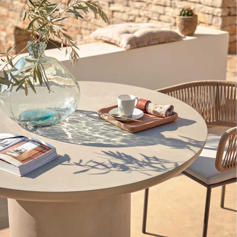 Table auxiliaire d’extérieur Mesquida en céramique avec finition terracotta dépolie Ø36 cm