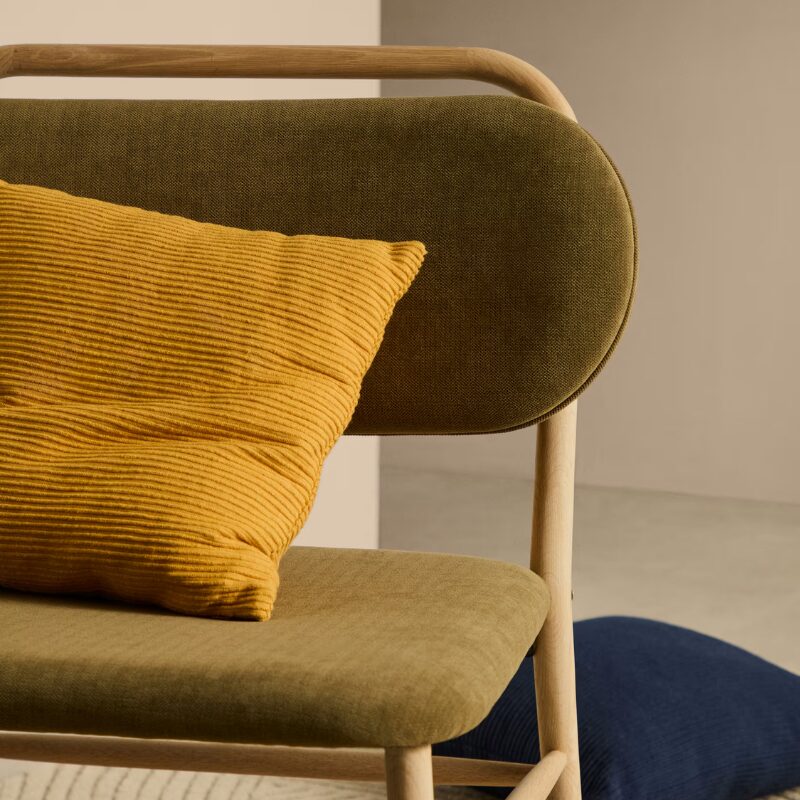 Fauteuil Helda en tissu chenille vert et bois de chêne