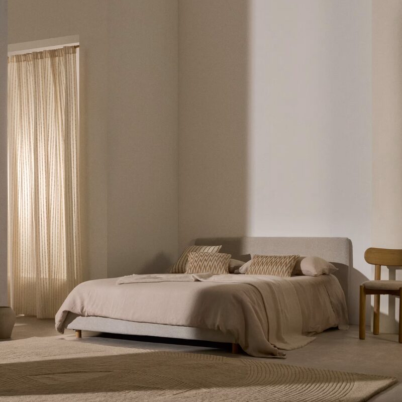 Cadre de lit Valma déhoussable 90×200 cm, en tissu chenille perle sans sommier