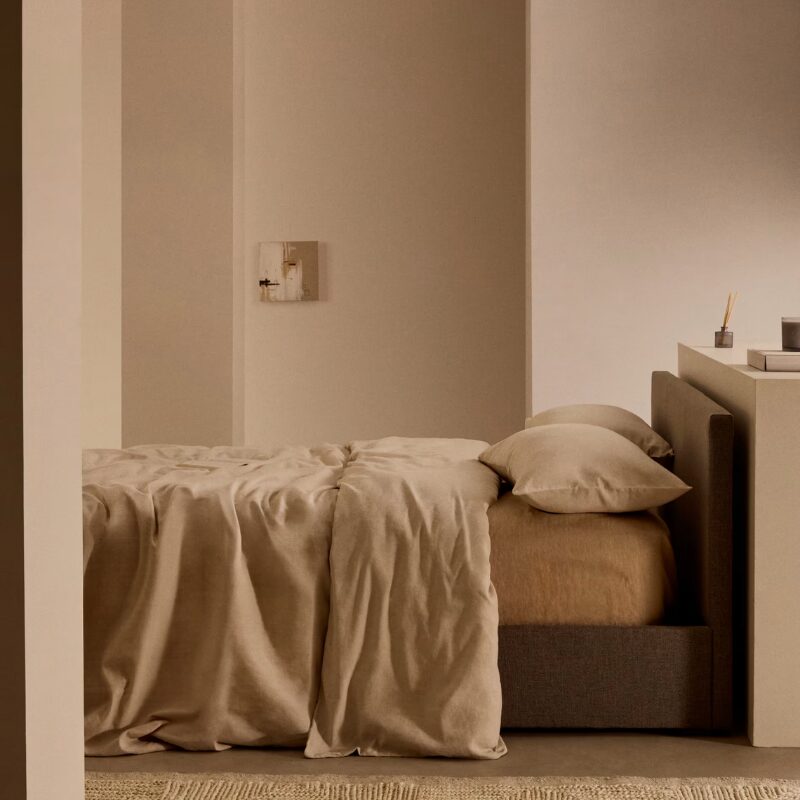 Drap plat en percale de coton 180 fils Lesia 240×280 cm – Tapioca beige