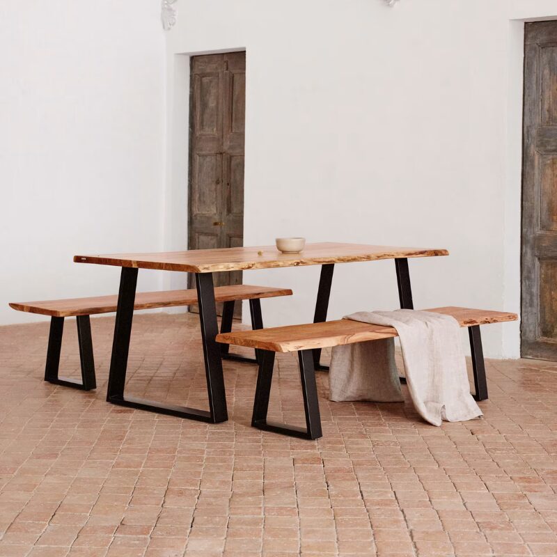 Table Alaia en bois d’acacia et pieds en acier noir 180 x 90 cm