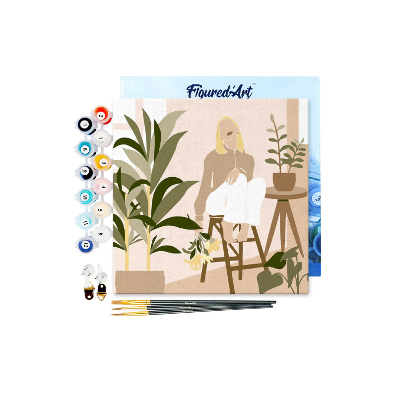 Mini Peinture par Numéros – Kit DIY 20x20cm avec cadre Femme et Bouquet