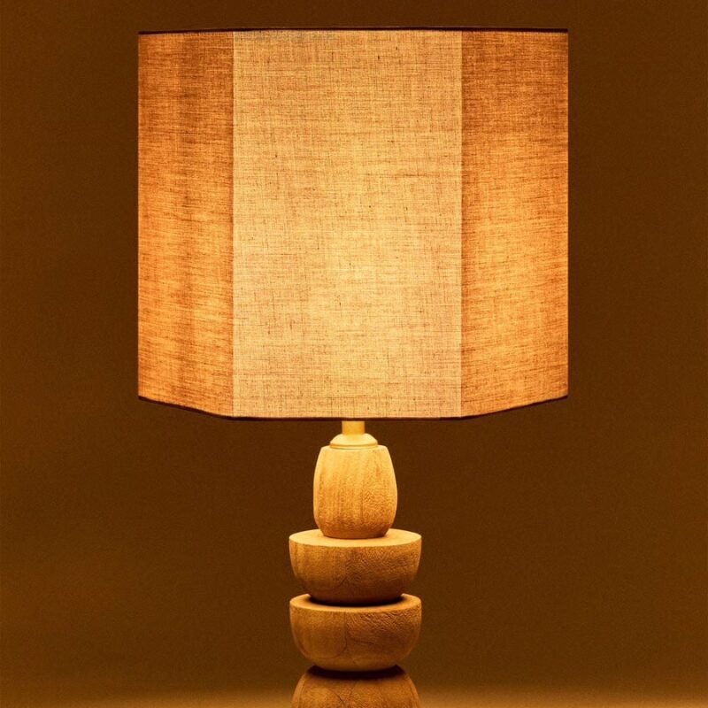 Lampe de Table Harry en bois de manguier, abat jour naturel Ø30 cm