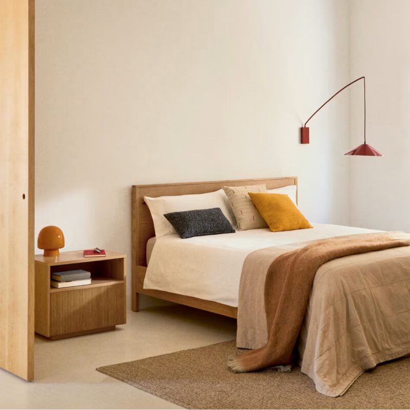 Lit Alguema en placage de chêne avec finition naturelle pour matelas 160×200 cm