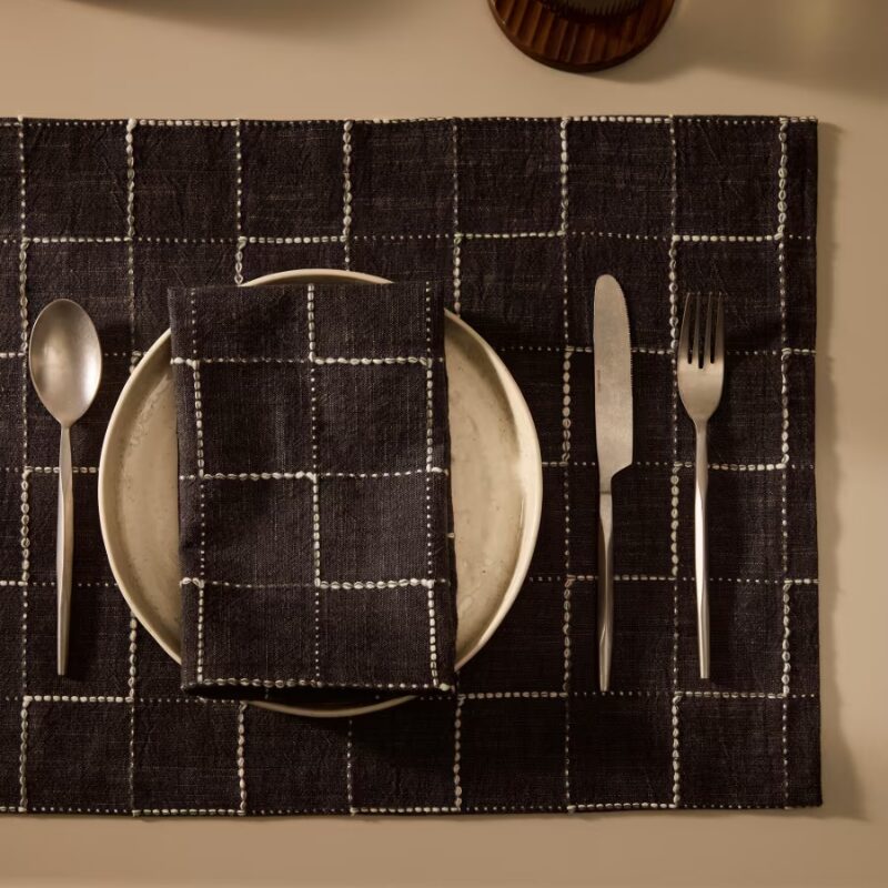 22.00€Couverture Macel en lin et coton à carreaux noir 130 x 170 cm