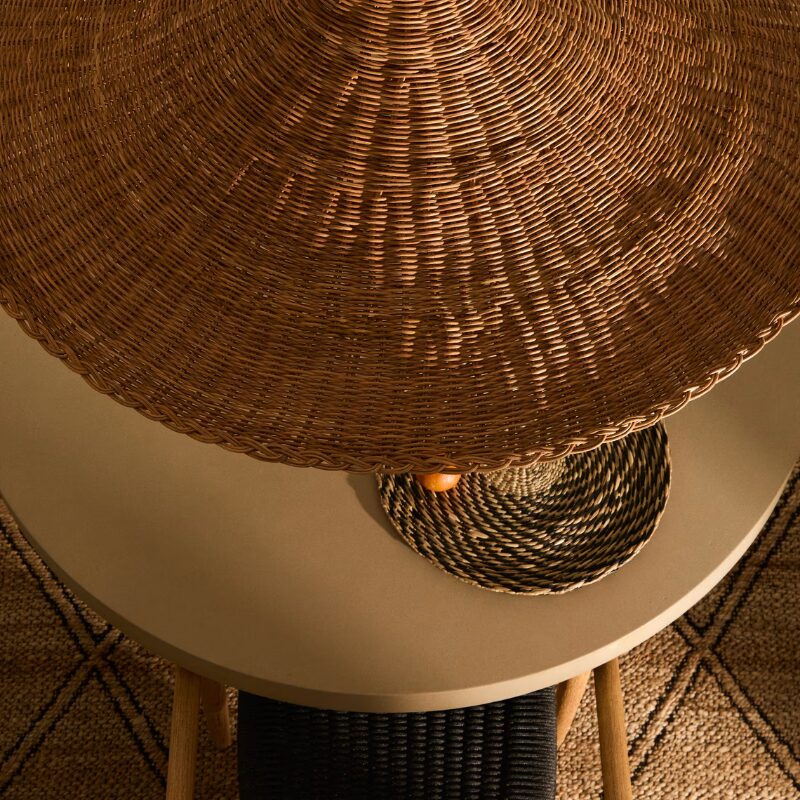 Le rotin est tressé à la main, de sorte que chaque pièce est unique, avec ses propres nuances et textures.