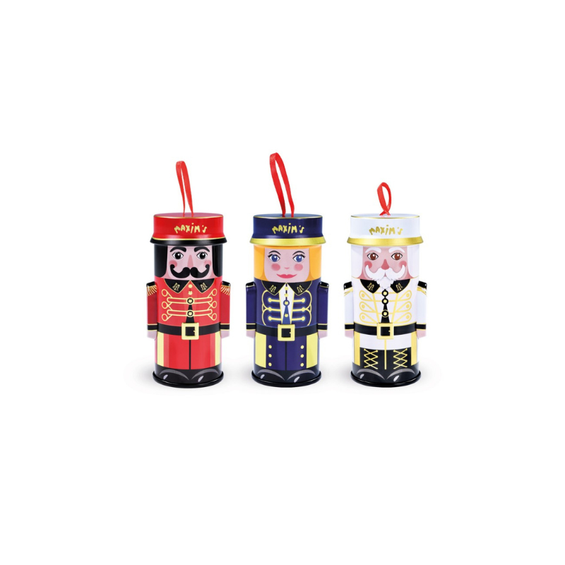 Dans la continuité du célèbre Groom Maxim’s, laissez-vous séduire par les mini-grooms Louis, Alfred et Joséphine, vos parfaits compagnons de fête ! Présentés dans une collection élégante, ces trois mini-grooms sont conçus pour orner votre sapin ou apporter une touche raffinée à votre table. À l’intérieur, découvrez 4 flûtes croustillantes, délicatement feuilletées et généreusement garnies de chocolat fondant aux noisettes.