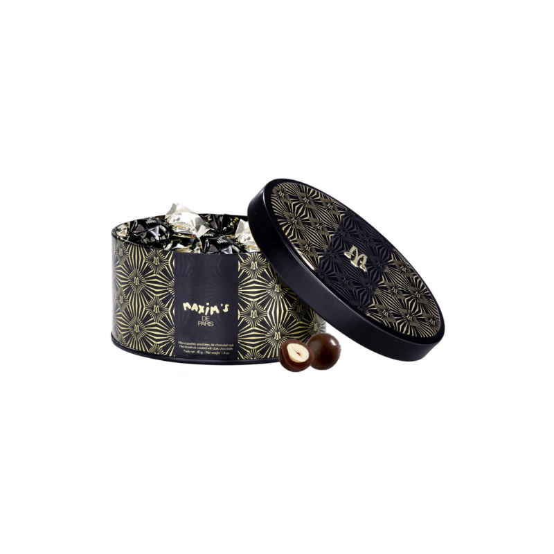 Bonbonnière métal noisettes chocolat noir