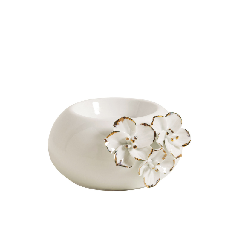 Laissez-vous séduire par ce brûle-parfum électrique Amour de Fleurs en céramique, habillé de fleurs raffinées dorées à la main. Simple à utiliser et sécurisé, il parfume rapidement et intensément une pièce de taille moyenne. Déposez-y un ou plusieurs décors en cire parfumée Mathilde M et laissez fondre doucement. Les décors en cire libèrent progressivement et tout au long de la chauffe leur délicat parfum. Lorsque les décors ne diffusent plus de parfum, il suffit de les changer.