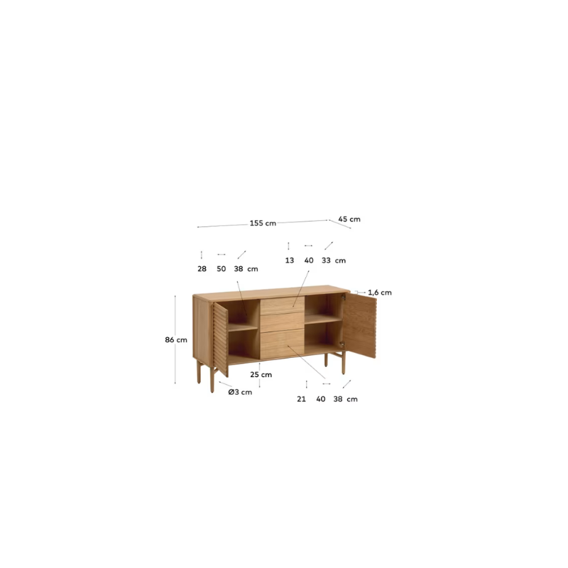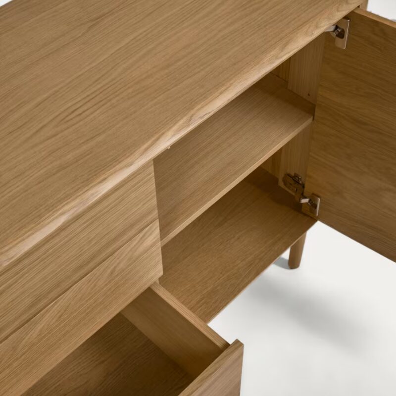 Buffet Lenon 2 portes et 3 tiroirs bois et placage chêne 155 x 86 cm (D)