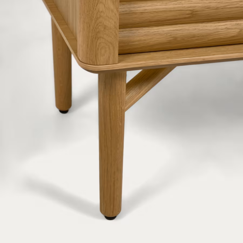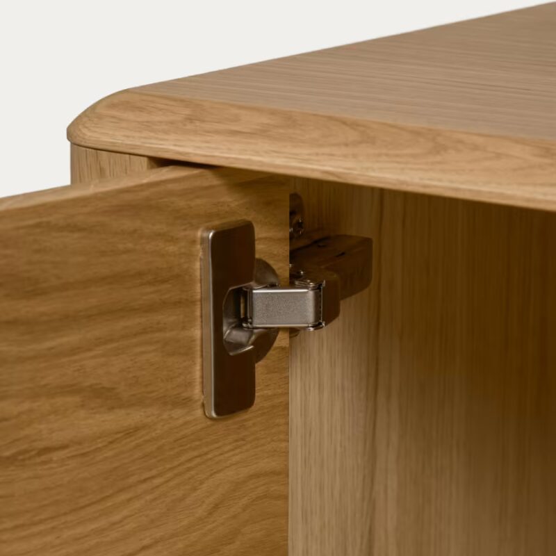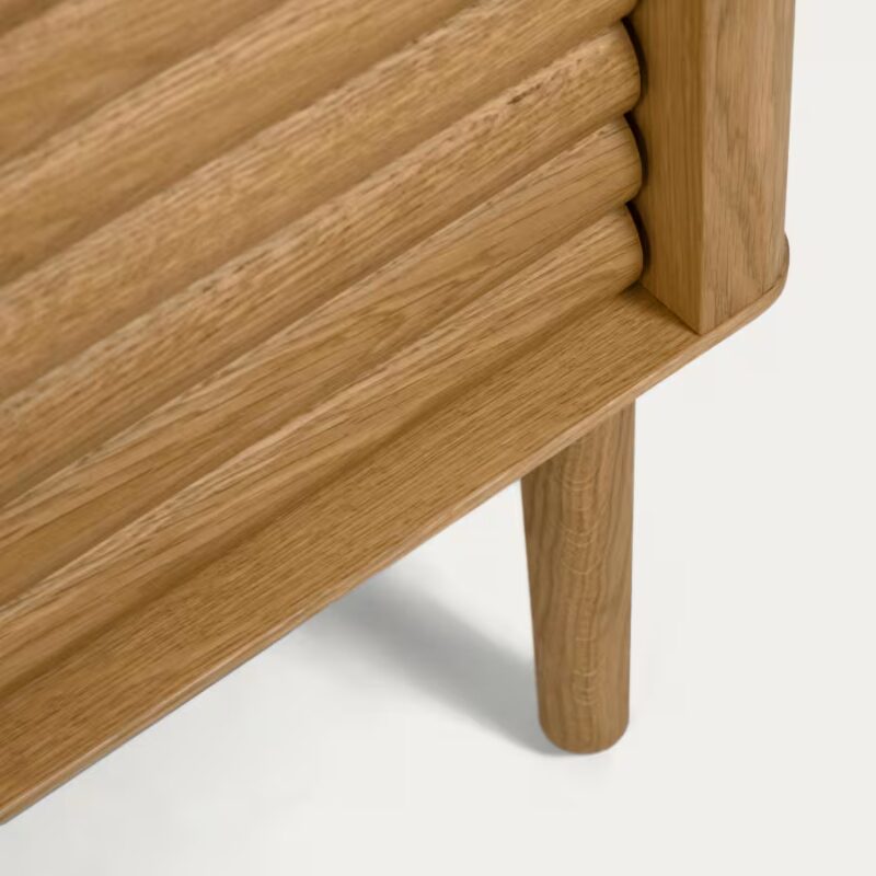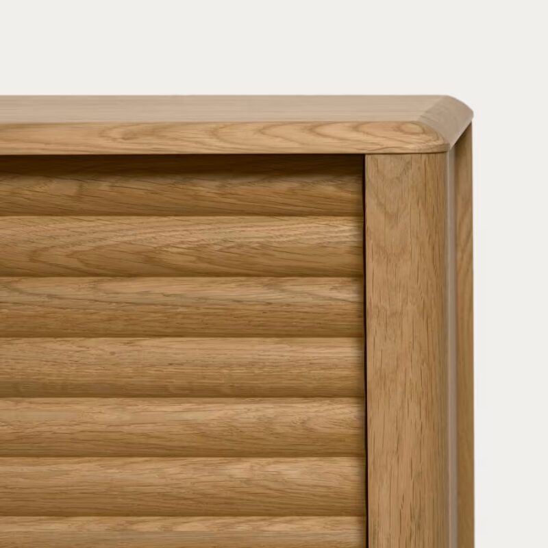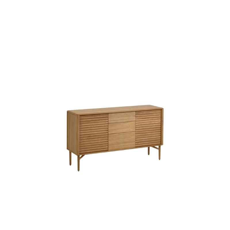 Laissez-vous séduire par la qualité du meuble Lenon. Il est fait en bois massif et placage de chêne écoresponsable et est fabriqué en Europe pour un résultat unique. Ses bords arrondis et les reliefs sur les portes sont l’atout charme de cette pièce.