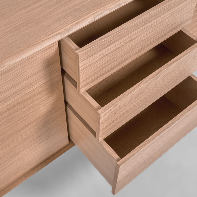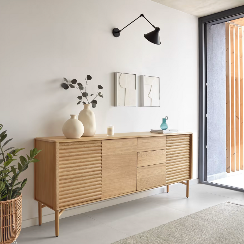 Buffet LENON – 3 portes avec 3 tiroirs en bois avec placage en chêne