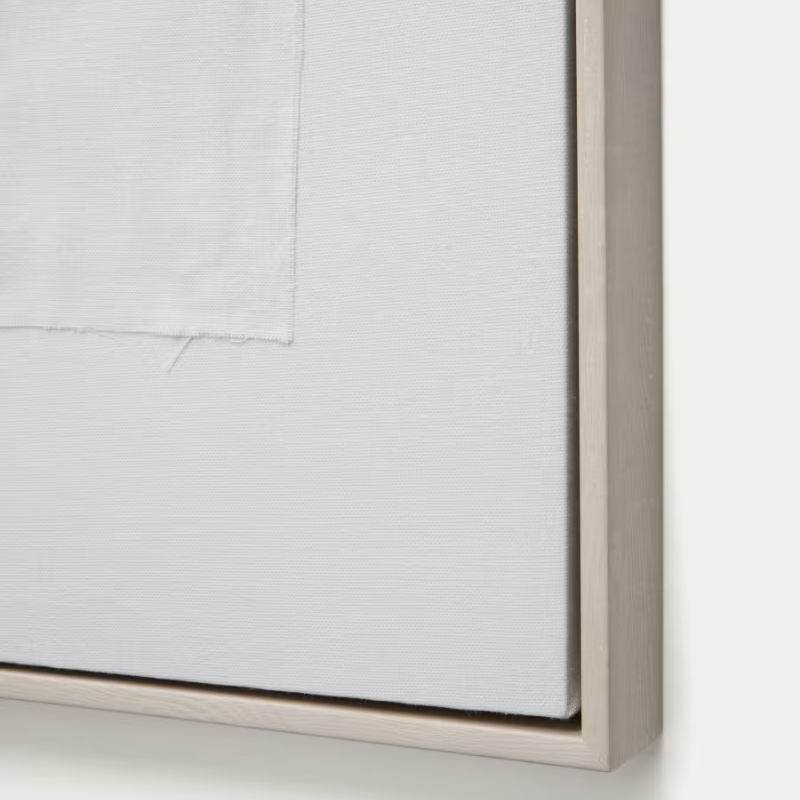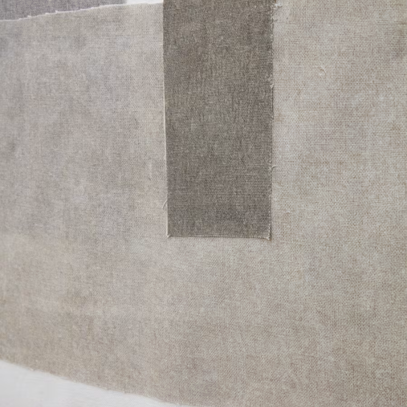 Composition faite avec superposition de chutes de lin et de détails de couture.