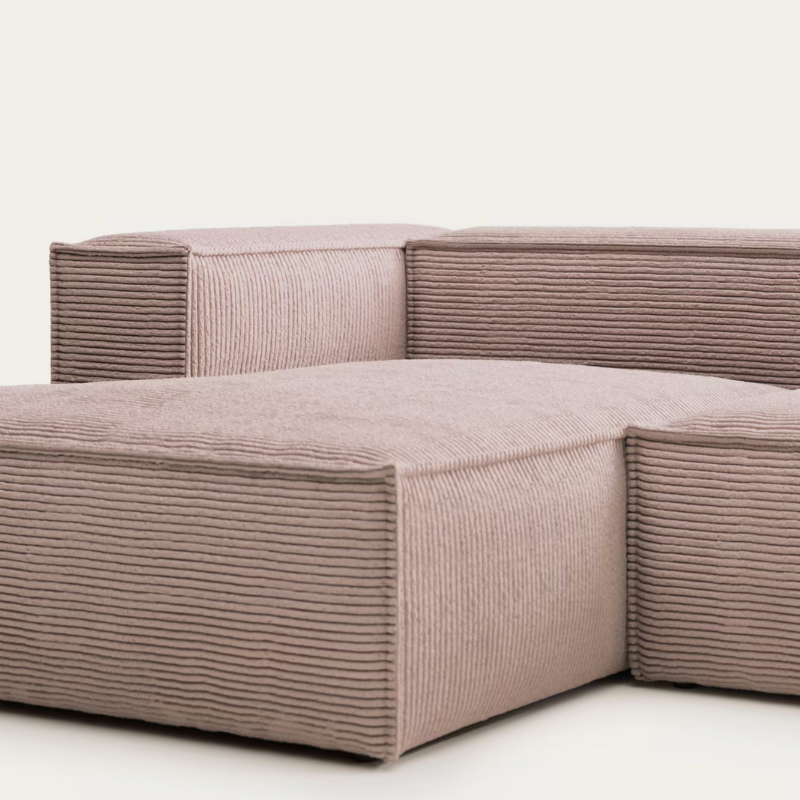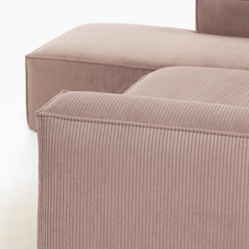 Canapé Blok 2 places méridienne gauche velours à grosses côtes rose 240 CM