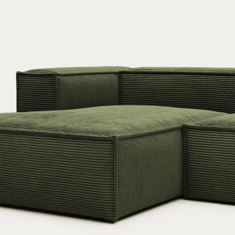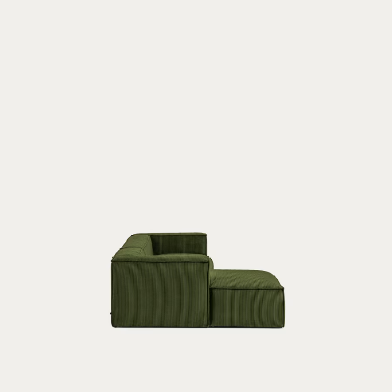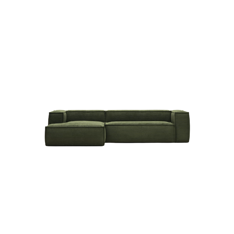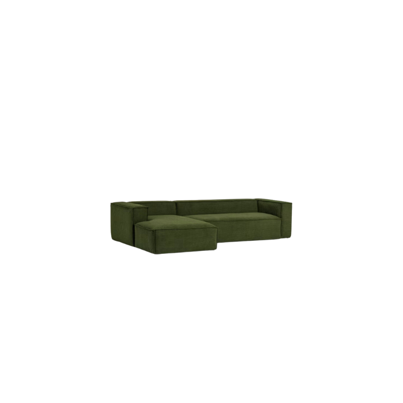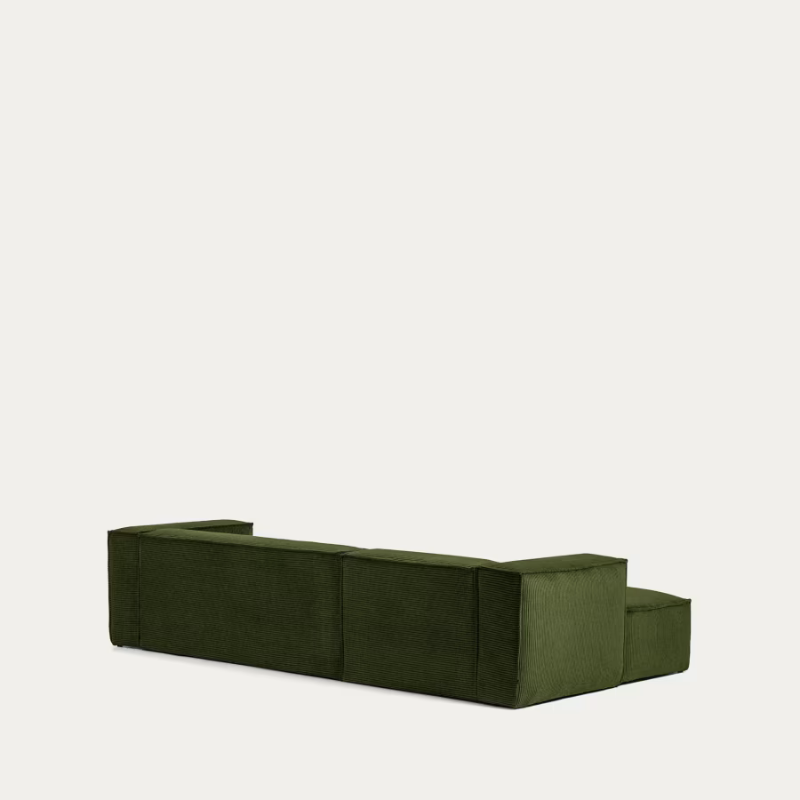 Canapé Blok 3 places méridienne gauche velours à grosses côtes vert 300 cm