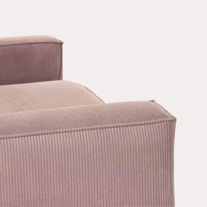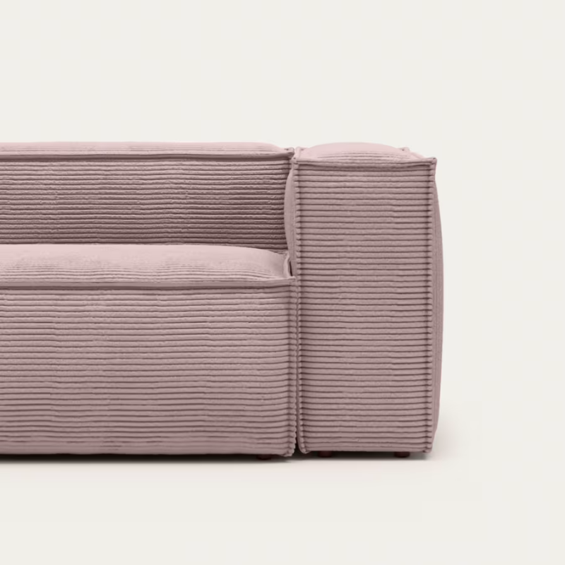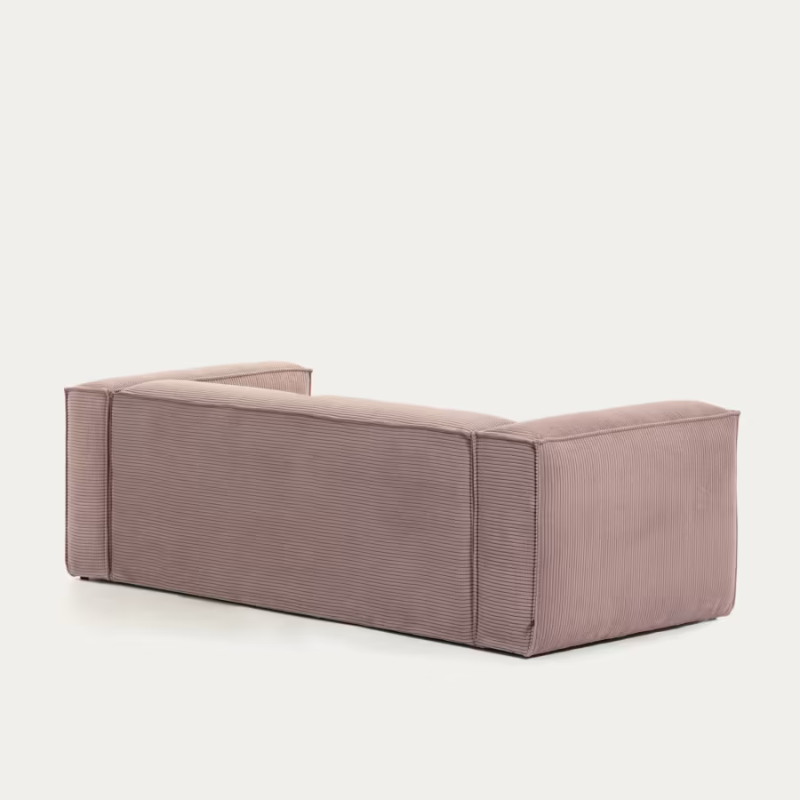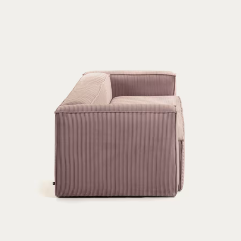 Canapé Blok 3 places velours à grosses côtes rose 240 cm