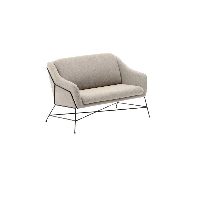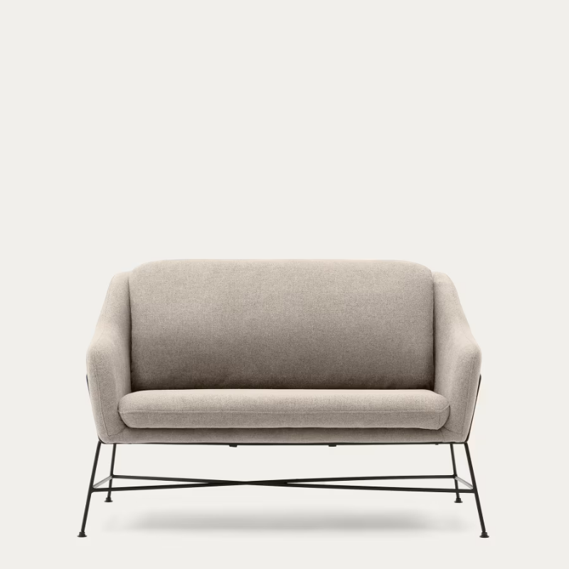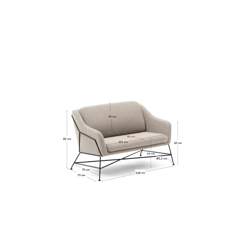 Canapé Brida 2 places beige et pieds en acier avec finition noire 128 cm