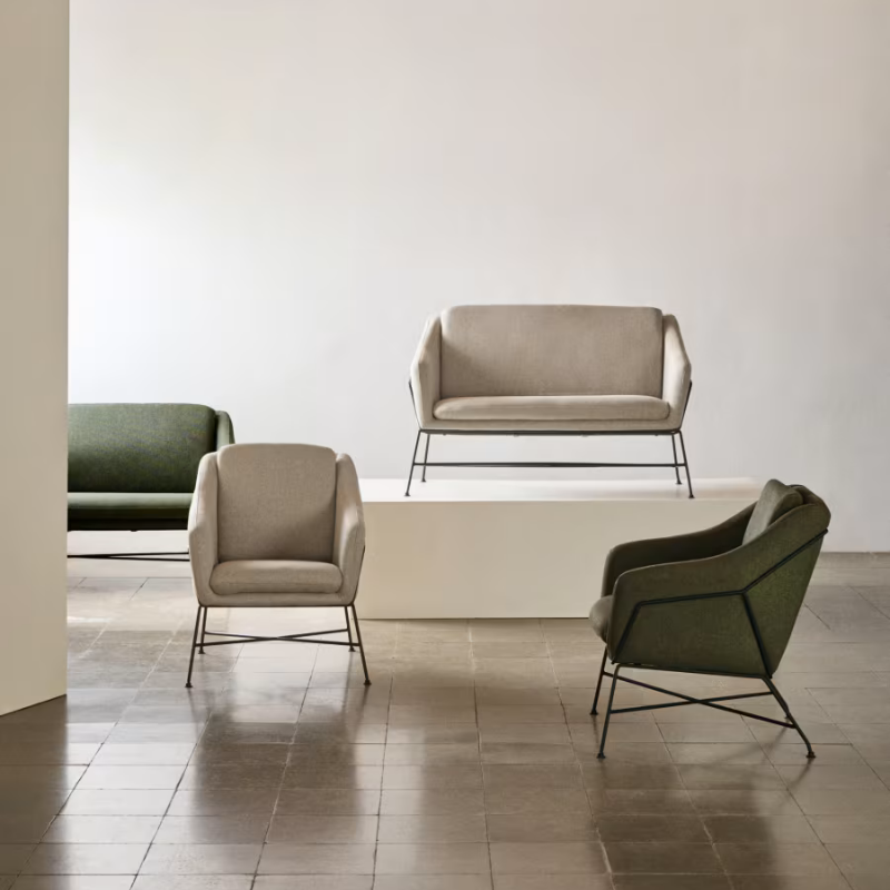 Matériaux : 30% Mousse polyuréthane, 30% Acier, 21% Contreplaqué E0, 19% Tissu