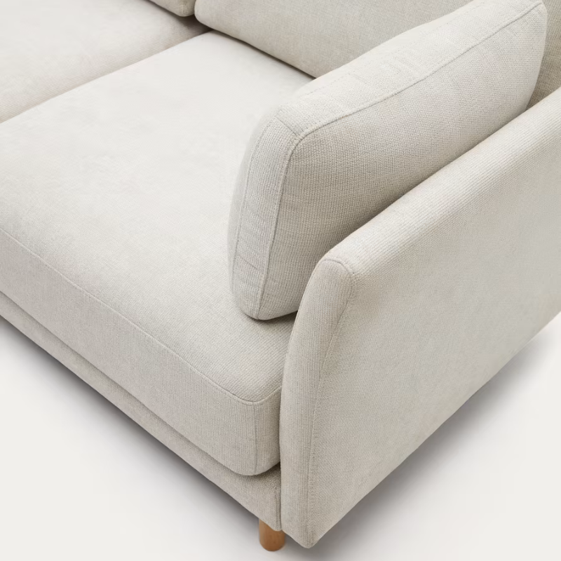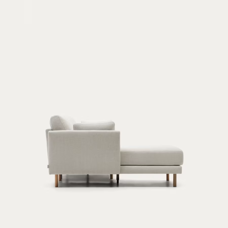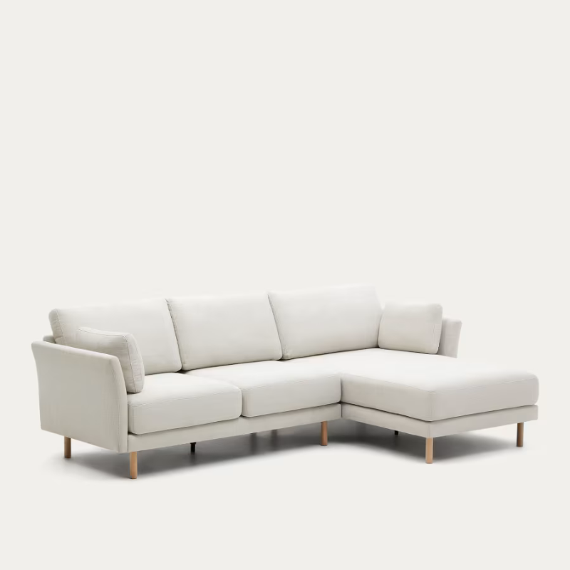 Canapé GILMA 3 places chenille perle pieds finition naturelle et méridienne droite ou gauche 260cm