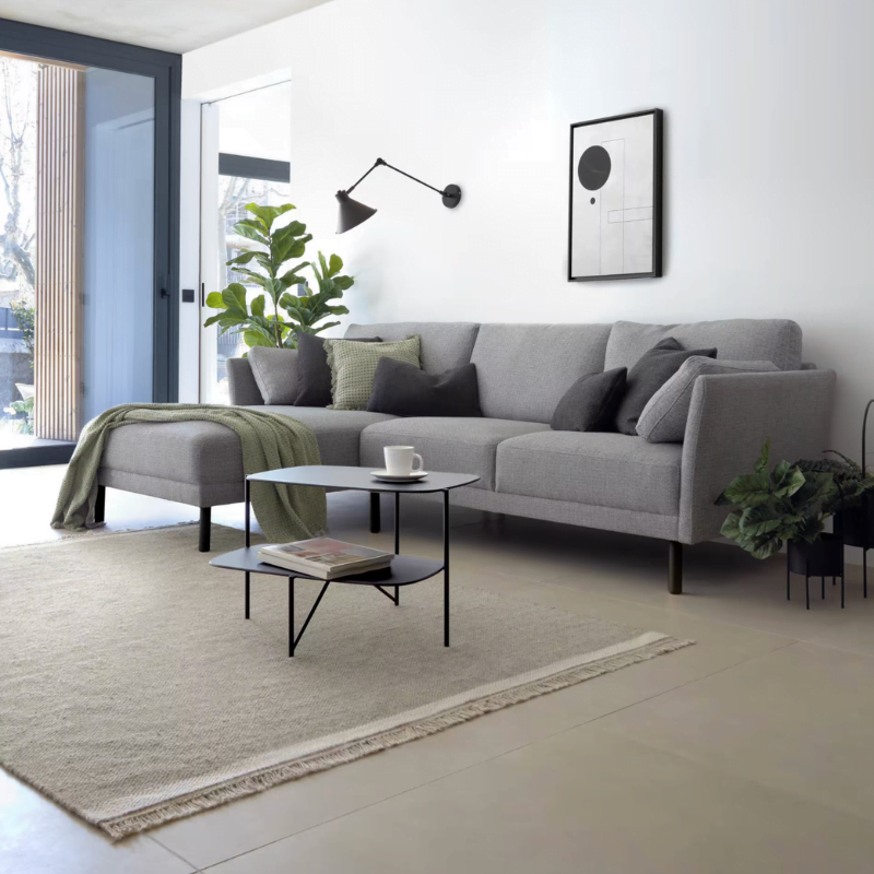 Canapé Gilma 3 places gris clair pieds finition noire et méridienne droite ou gauche 260cm