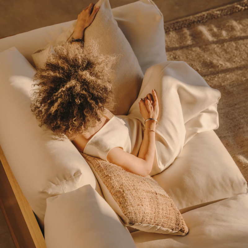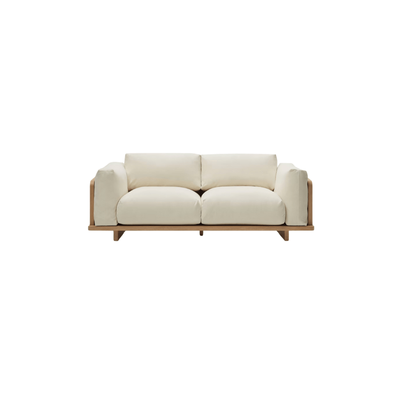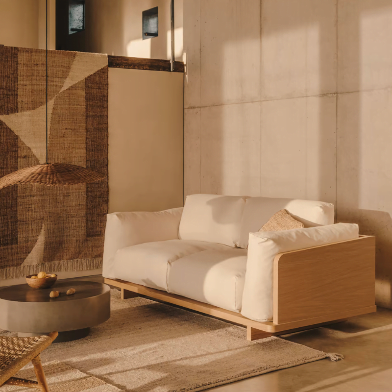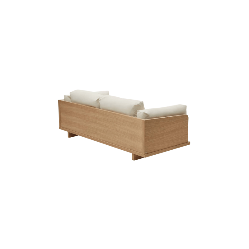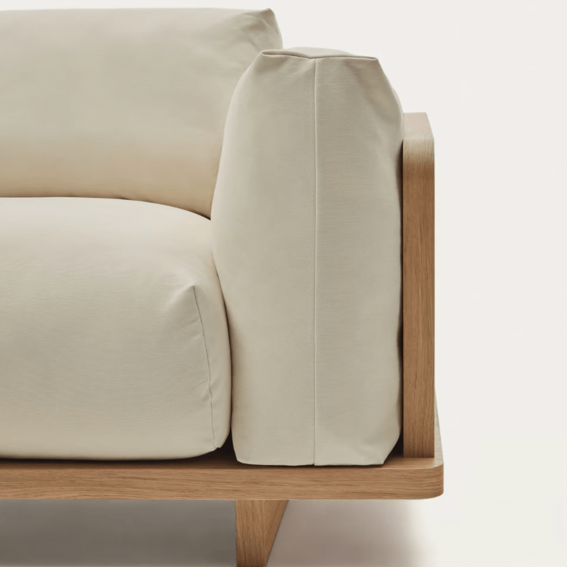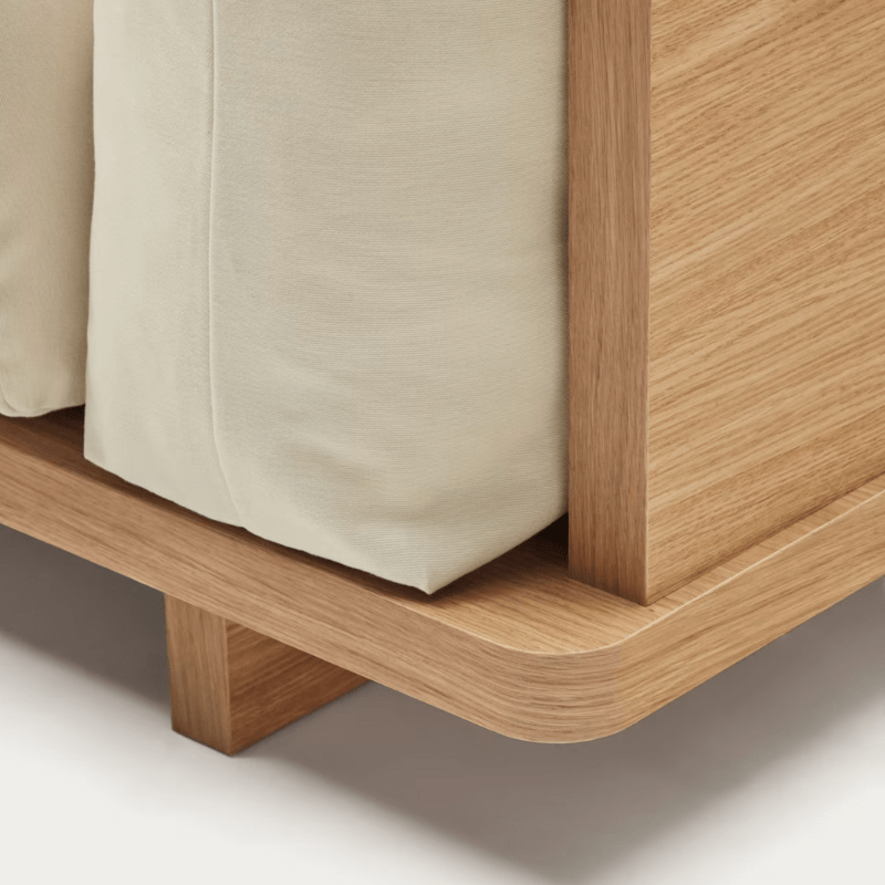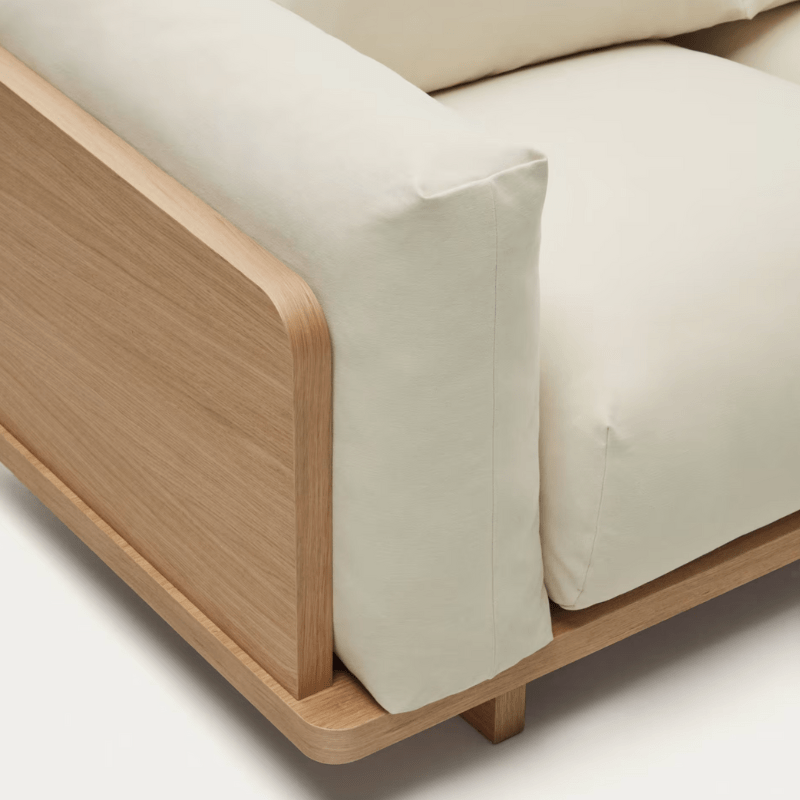 Structure en contreplaqué de chêne finition naturelle avec dossier, assise et accoudoirs déhoussables.