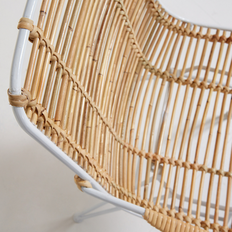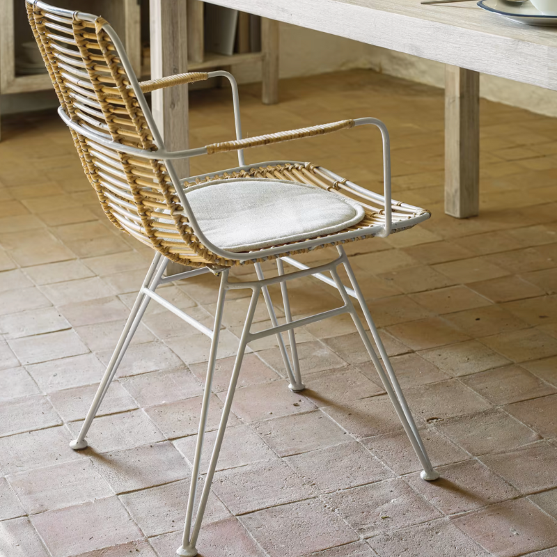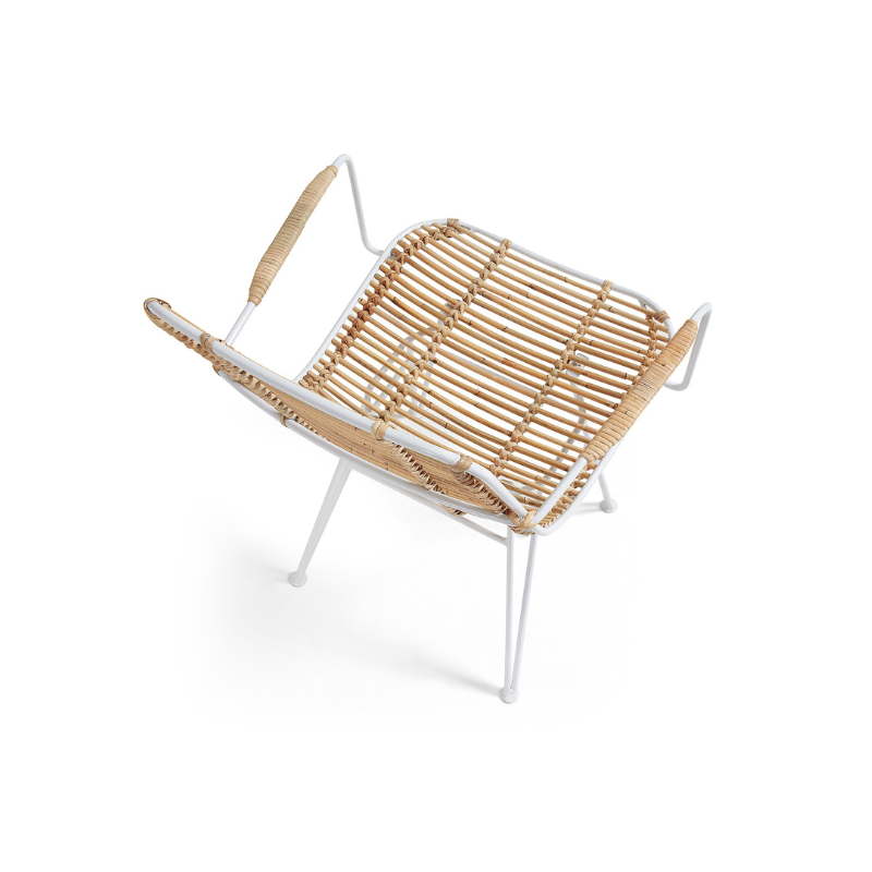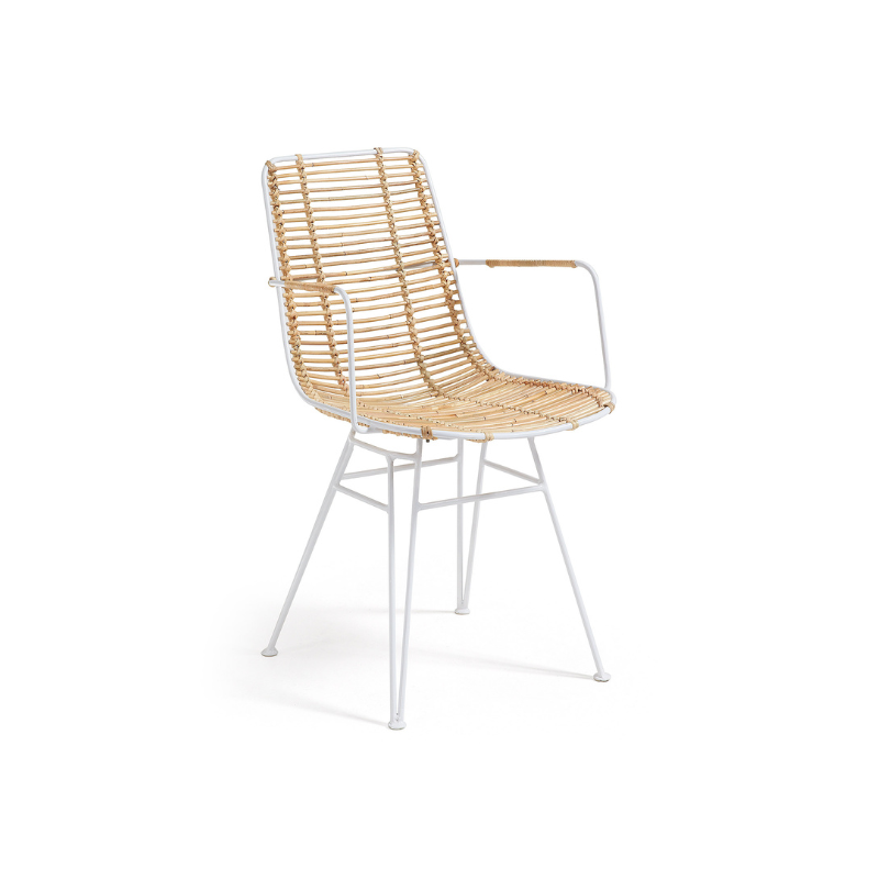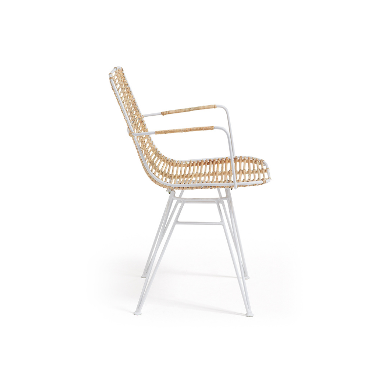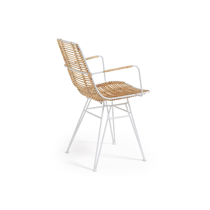 Chaise avec accoudoirs Tishana en rotin et acier blanc