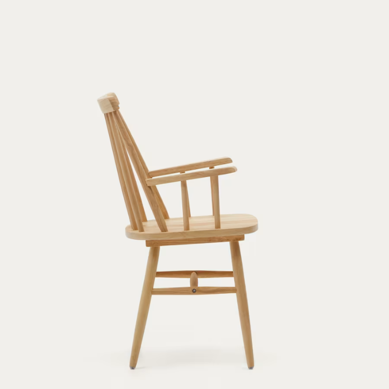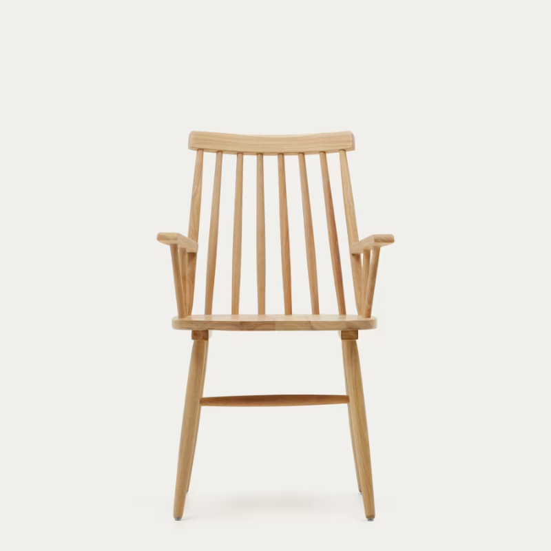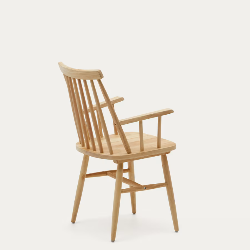 Chaise avec accoudoirs Tressia naturel. Un design style années 50 totalement revisité et adapté aux dernières tendances. Cette chaise n’a rien à cacher : elle est faite en hévéa massif écoresponsable et avec différentes finitions choisies spécialement pour conserver son style nordique.