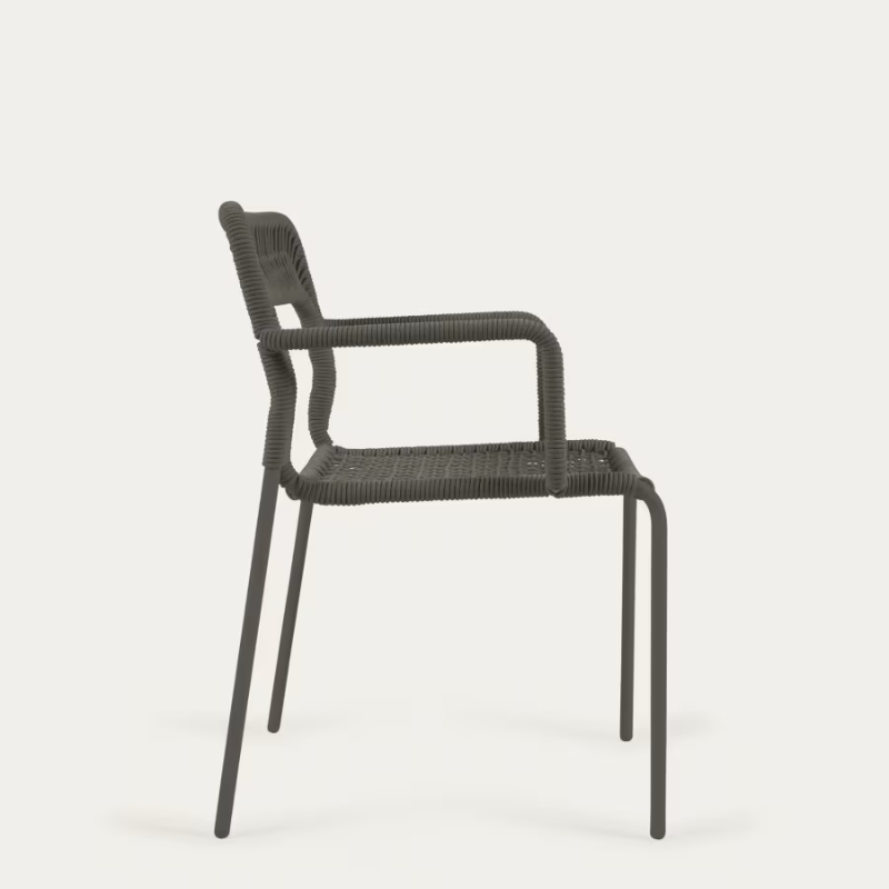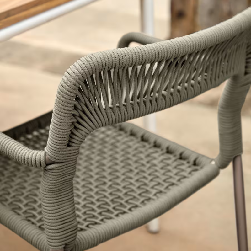 Chaise Cailin en corde verte et pieds en acier galvanisé vert foncé