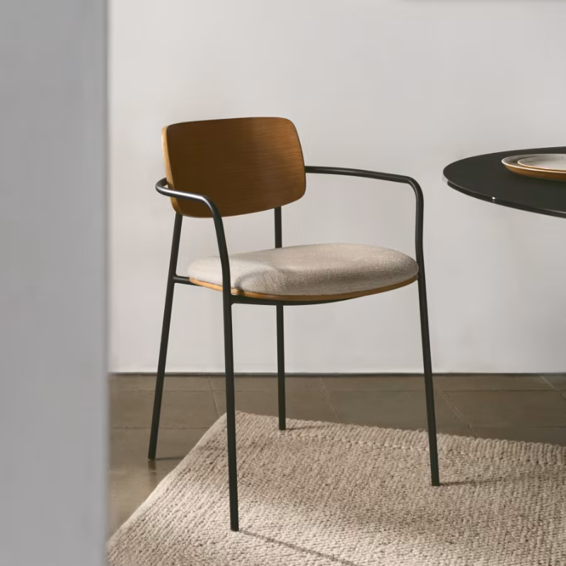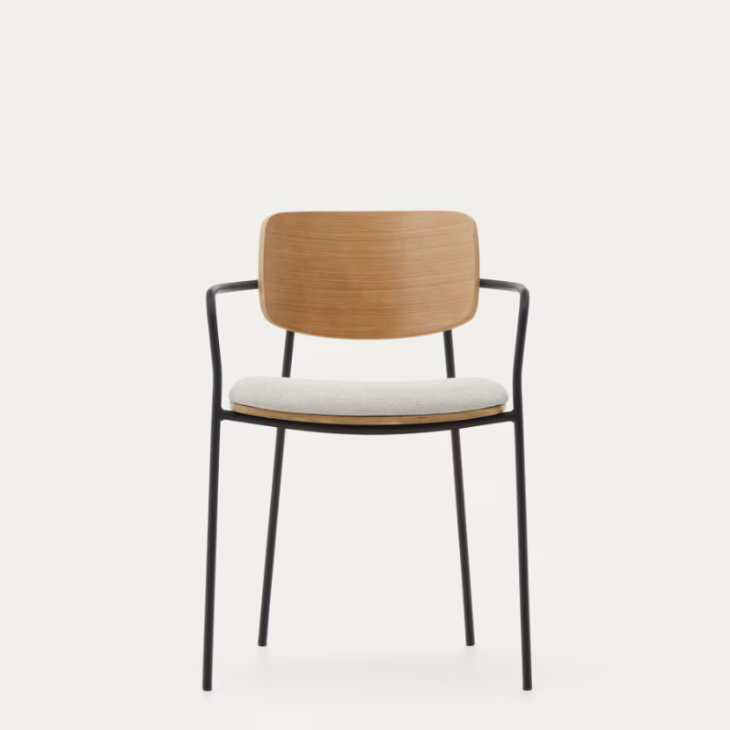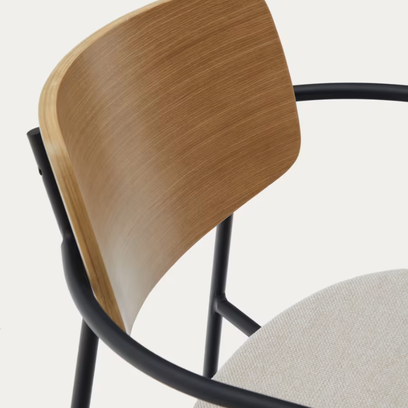 Chaise empilable Maureen en contreplaqué de peuplier et pieds métal noir (D)
