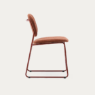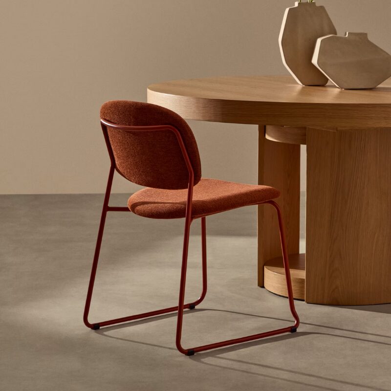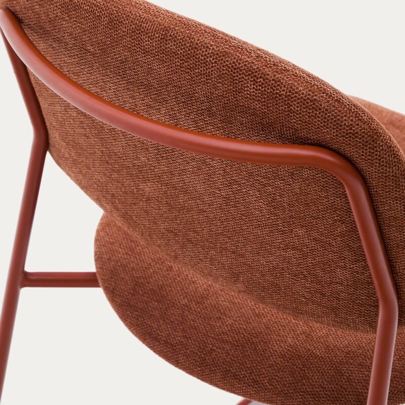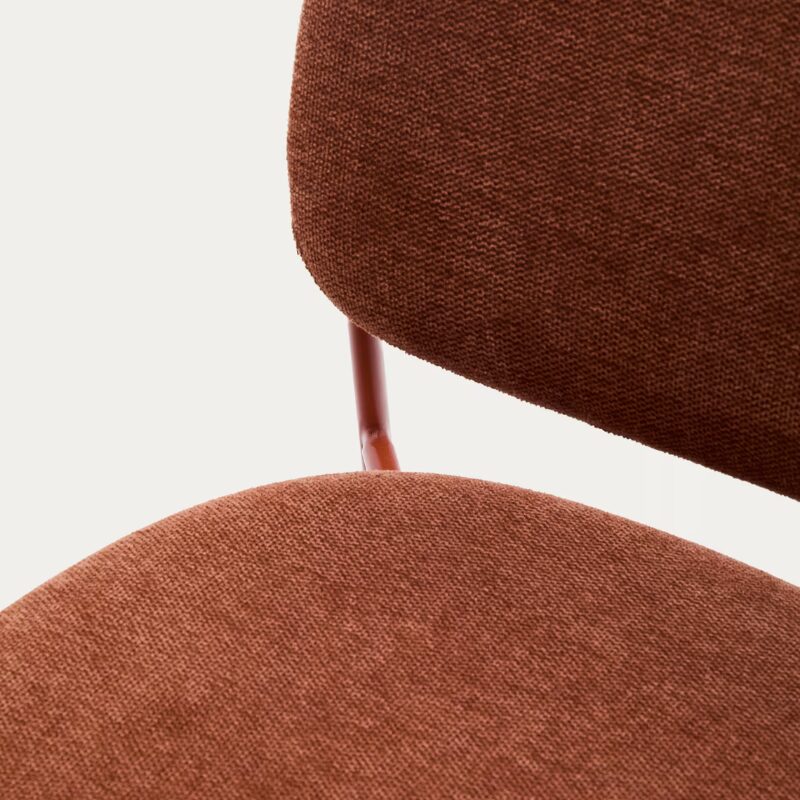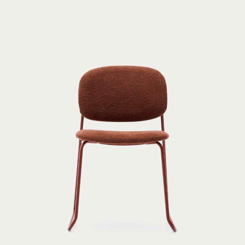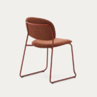 Chaise empilable Meli en chenille terracota et pieds en métal terracota