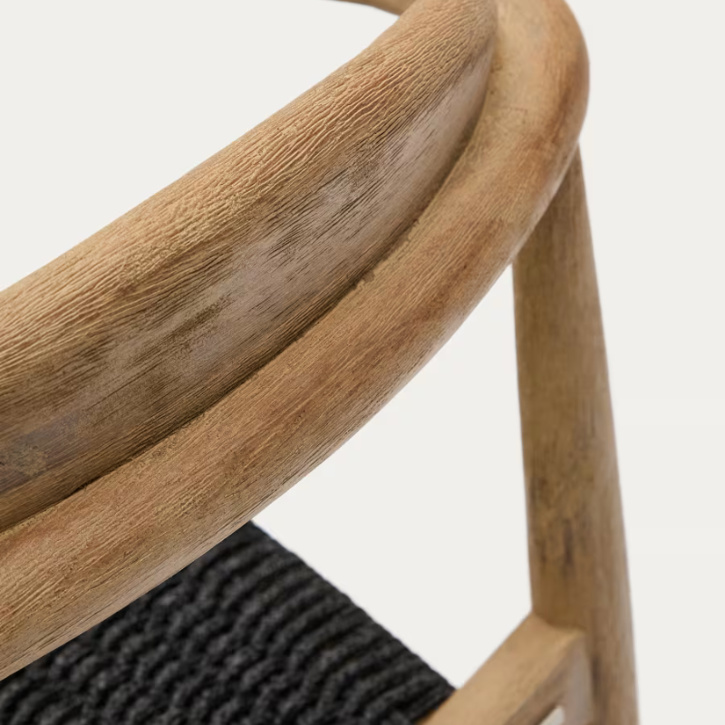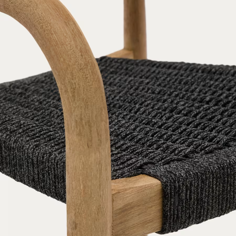 L’assise est en corde de couleur noire, tressée à la main et résistante aux rayons UV.