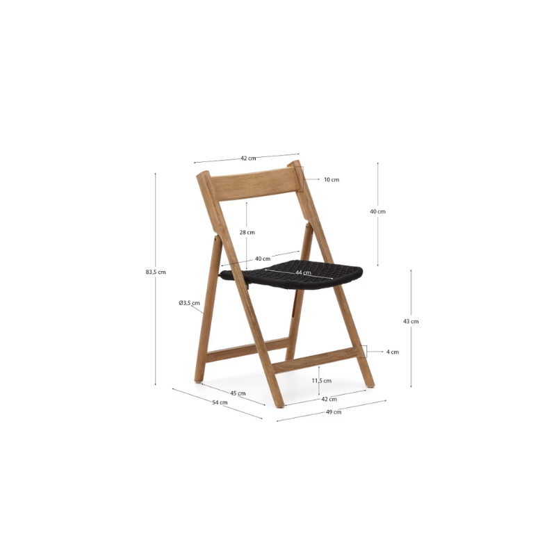 Chaise pliante DANDARA bois d’acacia et structure acier avec corde noire FSC 100%
