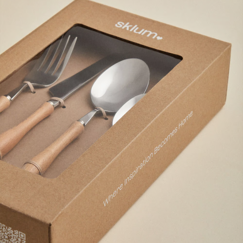 Couverts Midra en acier inoxydable avec manche en bois de hêtre – 16 pièces
