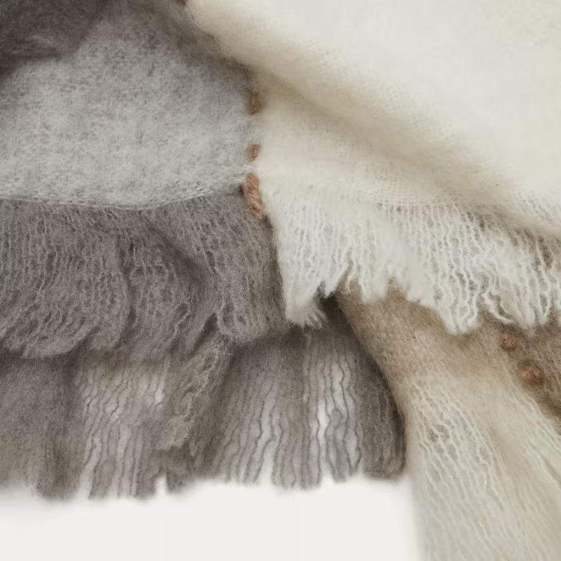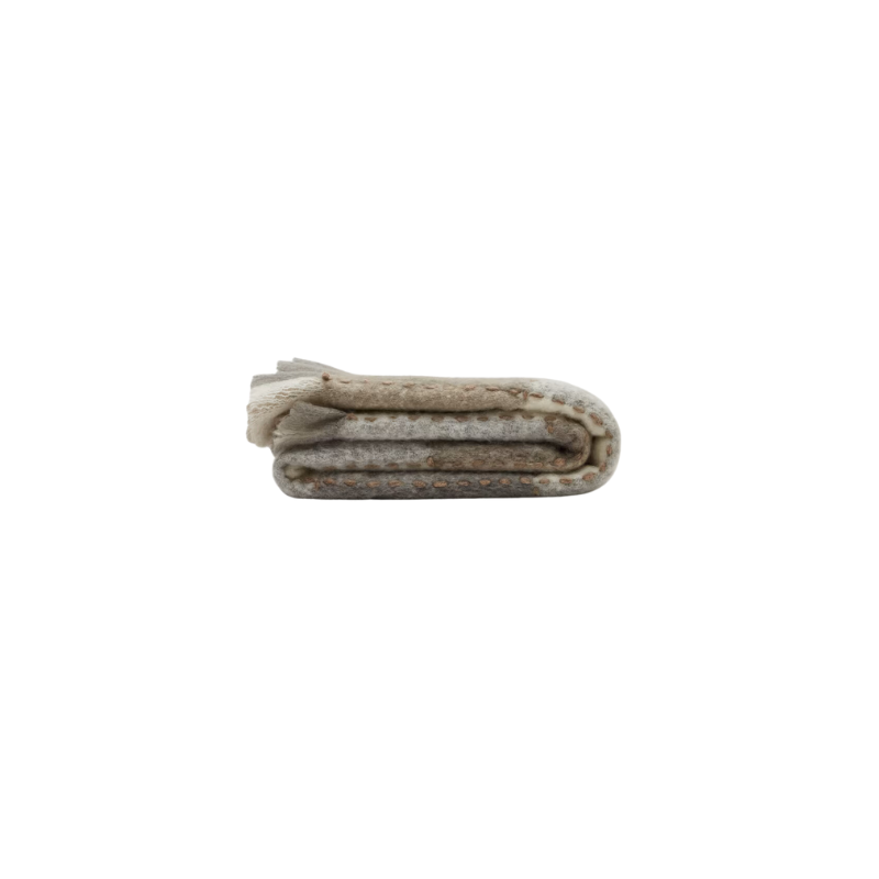 Couverture Munira à carreaux avec franges blanc et gris avec surpiqûre marron 130 x 170 cm.