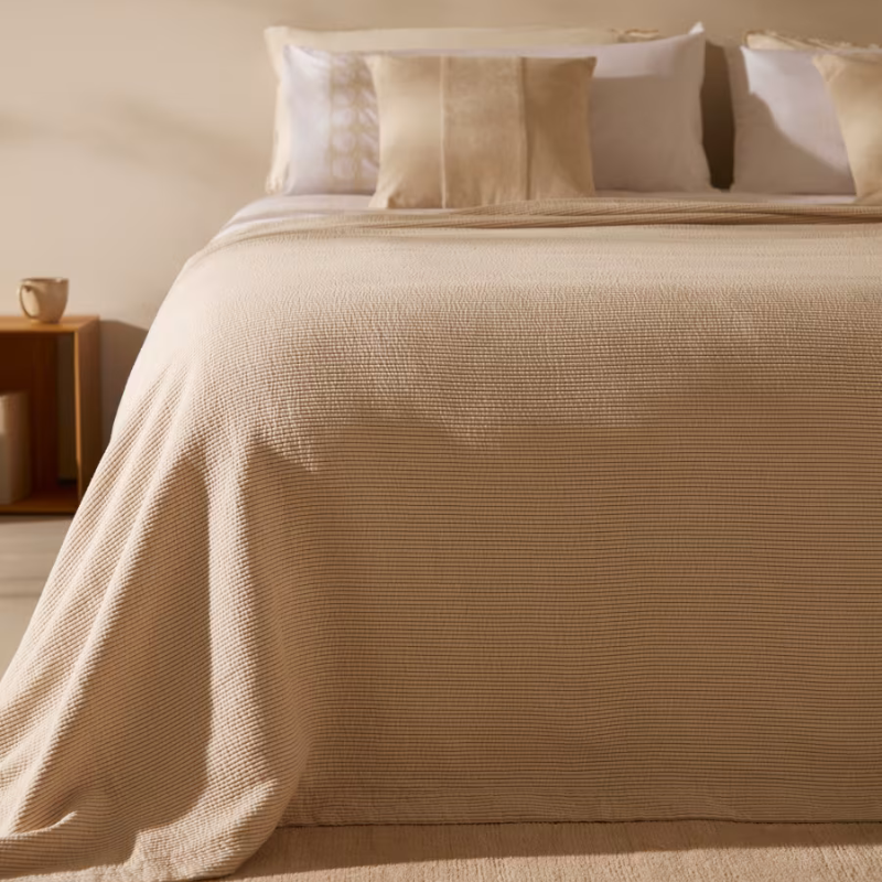 Couvre-lit Bedar 100% coton beige pour lit de 180/200 cm.