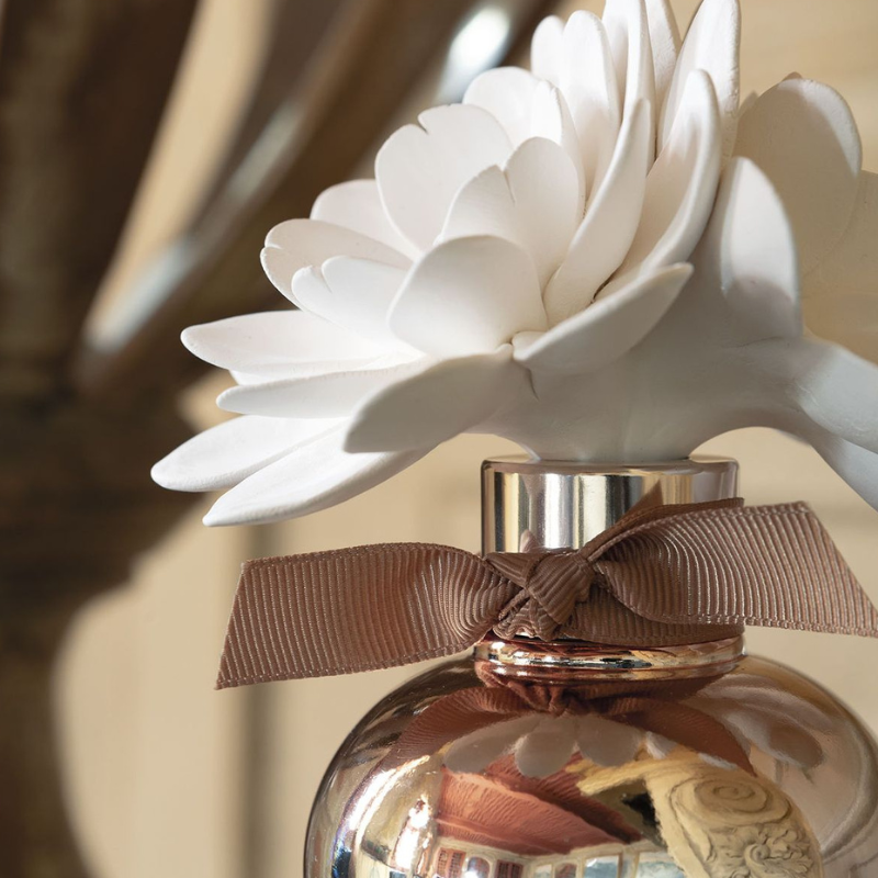 Découvrez l’élégant diffuseur de parfum d’ambiance Valse Florale qui parfumera durablement votre intérieur. Réalisées à la main, deux fleurs entrelacées en biscuit de porcelaine reposent dans leur flacon en verre cuivré effet tie & dye.