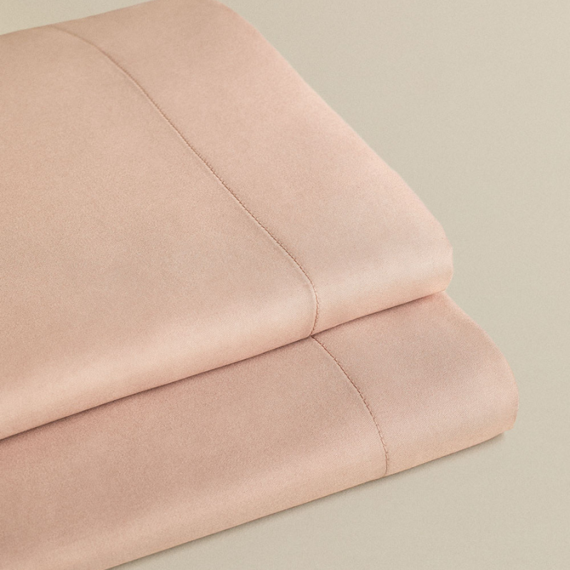Drap plat en satin 300 fils Sampras 240×280 cm – Rose noisette