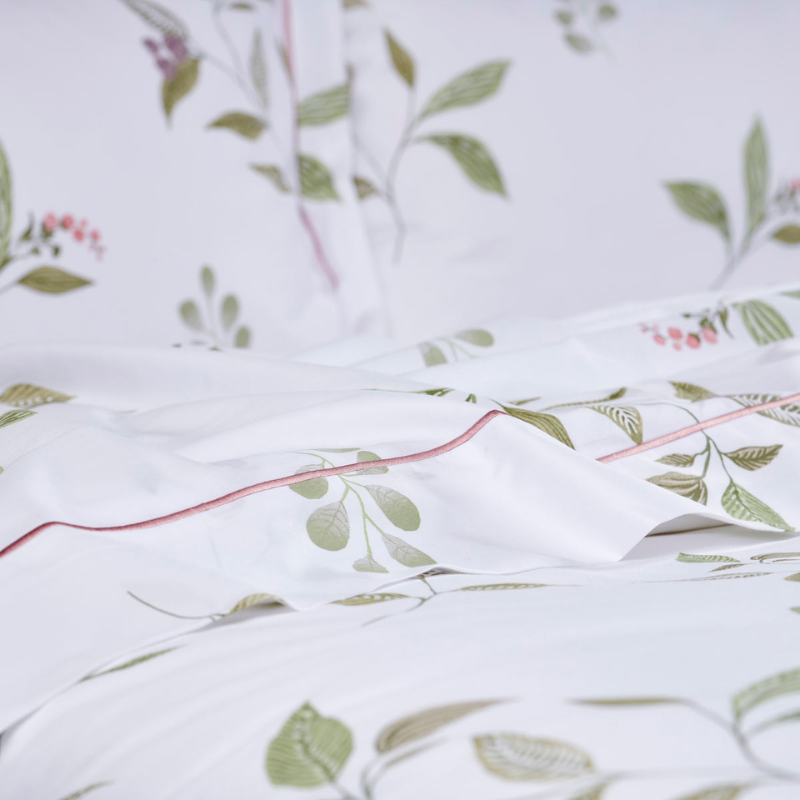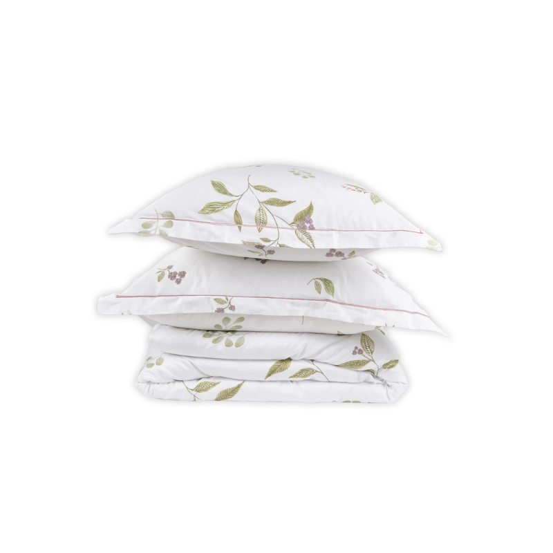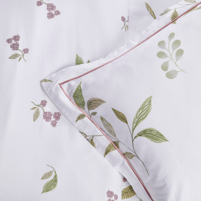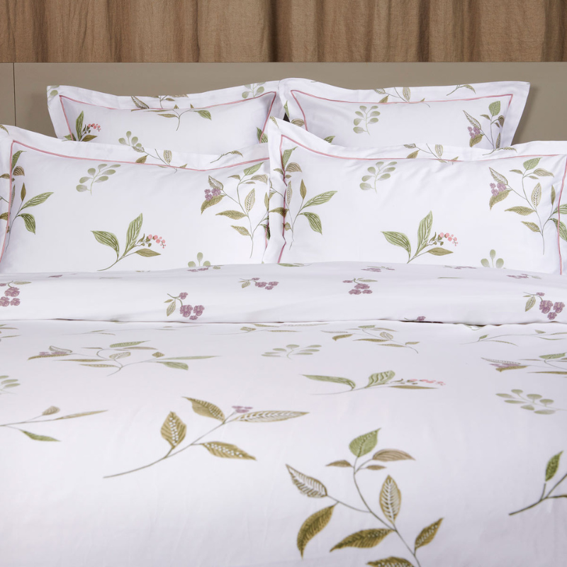 Apportez une touche de nature et de fraîcheur à votre chambre avec parure de lit Violette. Les délicates violettes et le feuillage créent une ambiance paisible et apaisante. Grâce à sa conception en satin de coton 120 fils/cm?, vous profiterez d’une sensation de douceur inégalée sur votre peau. Chaque détail compte, c’est pourquoi sa finition bourdon piqué rose poudré ajoute une touche sophistiquée et élégante, faisant de cette parure de lit un véritable bijou pour votre chambre.