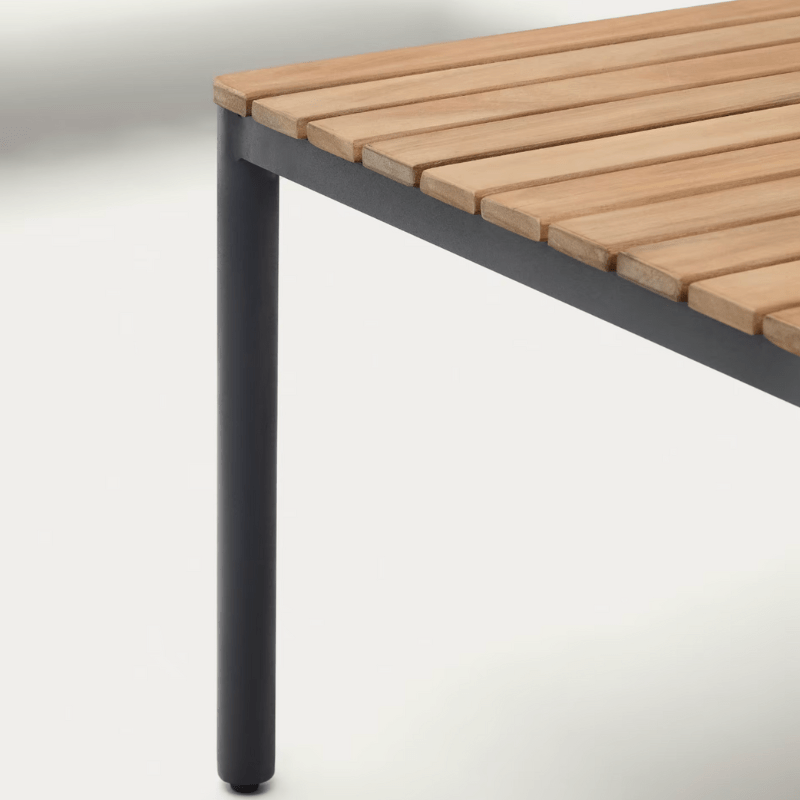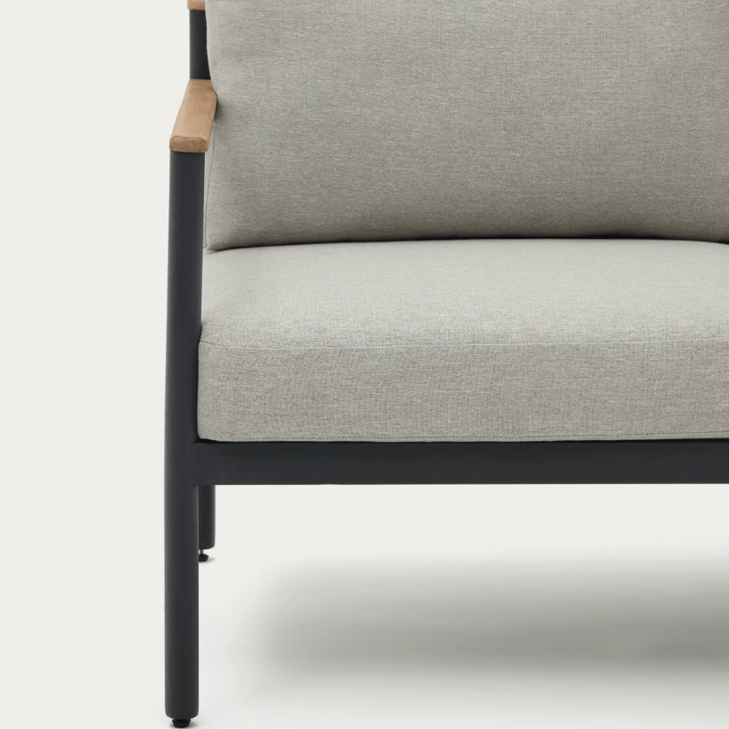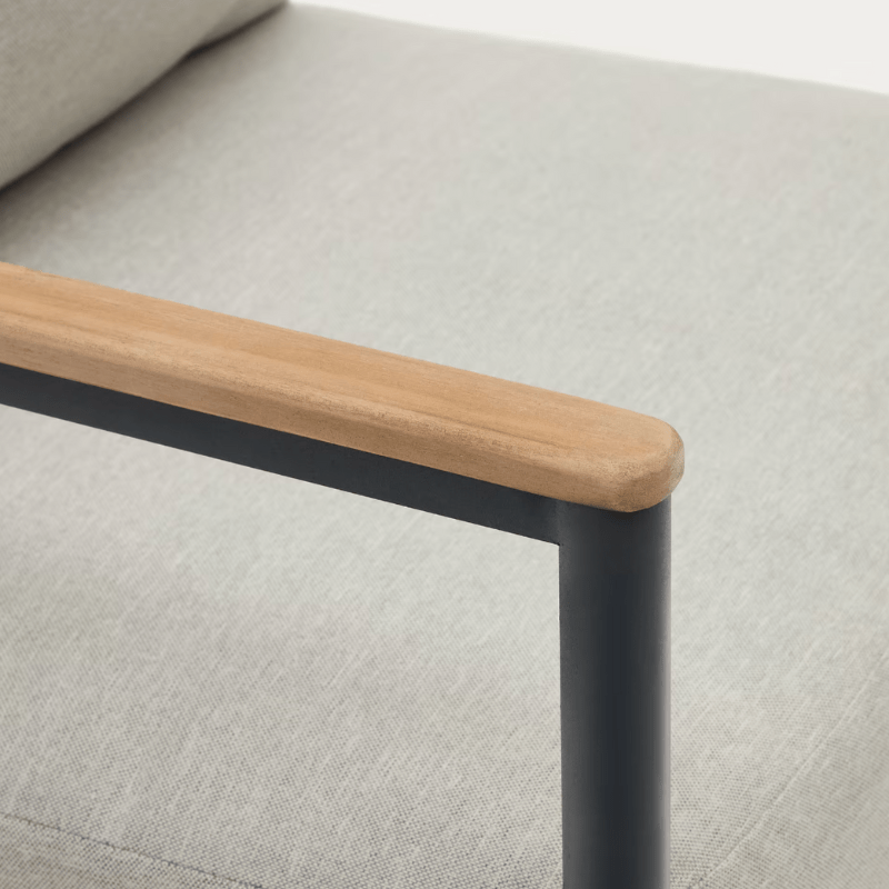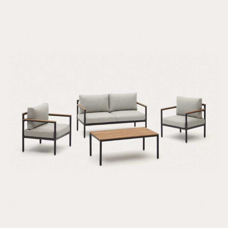 Ensemble Aiguafreda canapé 2 places, 2 fauteuils, table basse aluminium gris bois acacia.