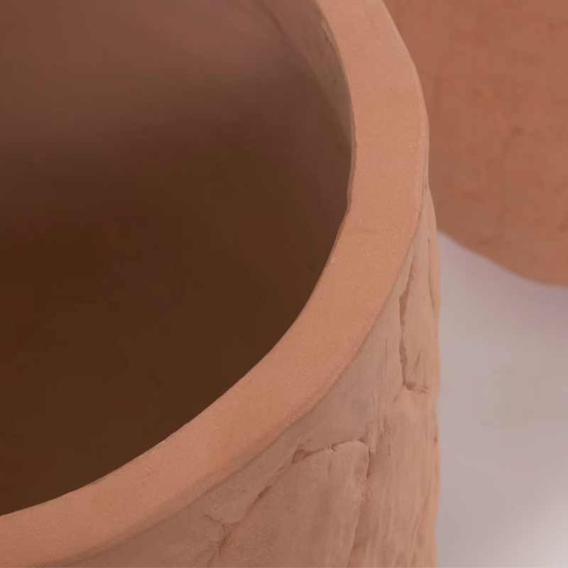 La terre cuite rend chaque pièce unique, avec ses propres tons et veinures.