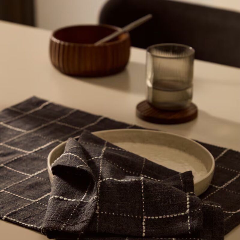 La nappe Ersen en coton à carreaux dans les tons gris est idéale pour créer un style élégant en plus de protéger votre table. Associez-la avec le reste de la collection pour un total look.