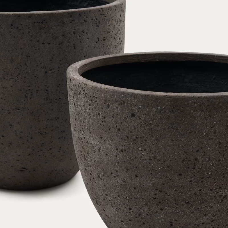 Ensemble SERILI de 2 pots de fleurs en ciment et fibre de verre – Gris foncé
