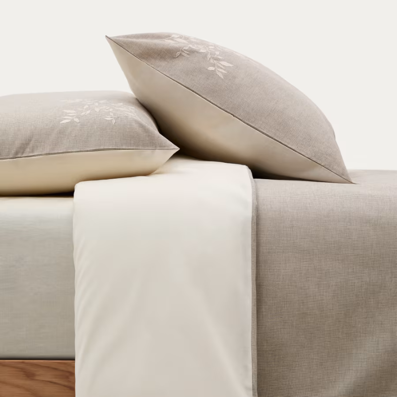 Ensemble Sotela housse de couette et taie d’oreiller à rayures avec broderie 100 % percale de coton.