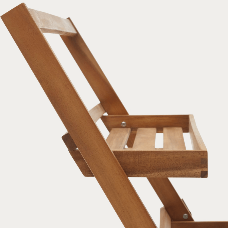 Faite en bois massif d’acacia verni transparent pour une grande longévité et plus de résistance aux rayons UV.