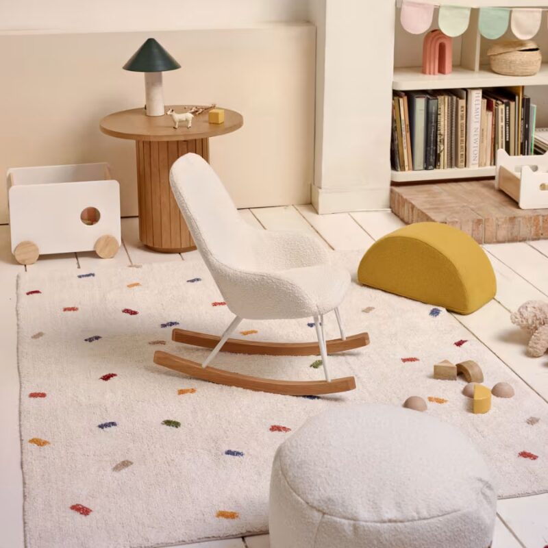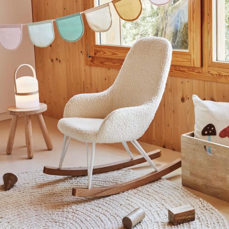 Aménagez un joli coin lecture pour votre enfant. Avec son assise enveloppante, le fauteuil à bascule Joey accueillera votre petit pour lui offrir un confort optimal lors de ses premières lectures.