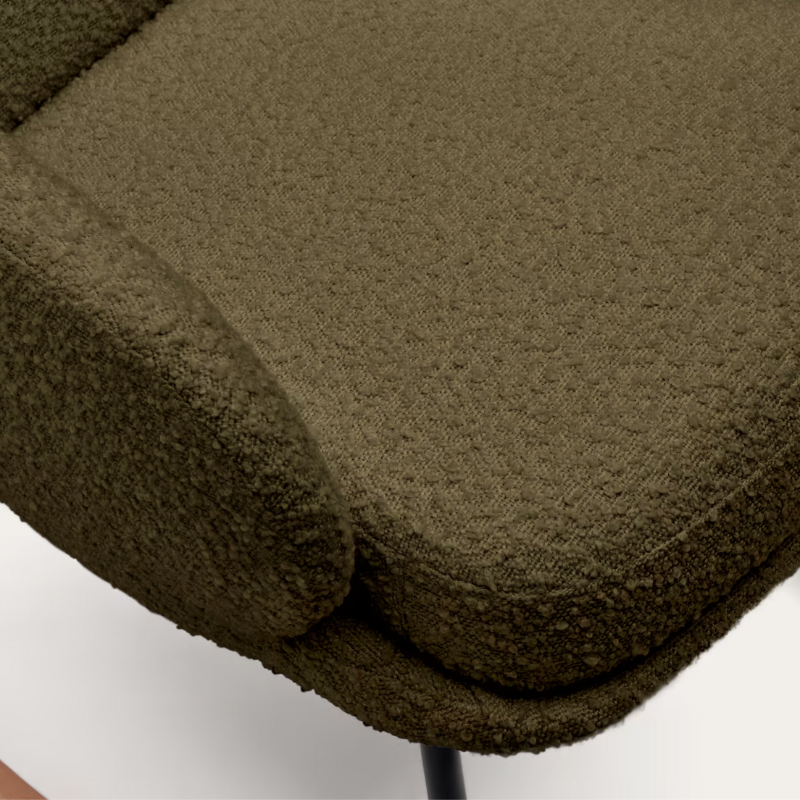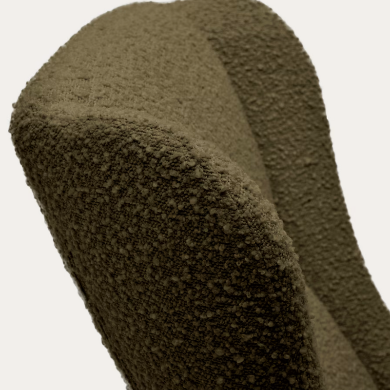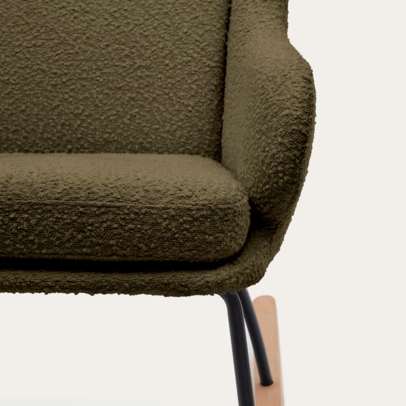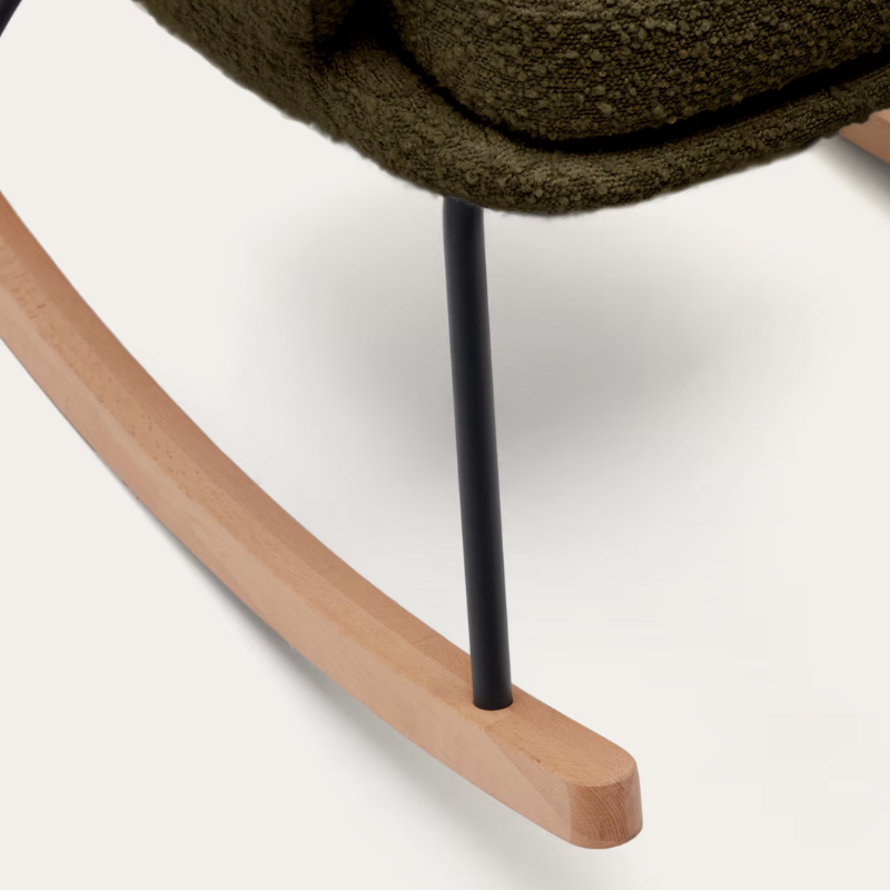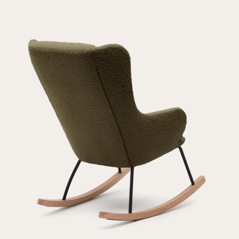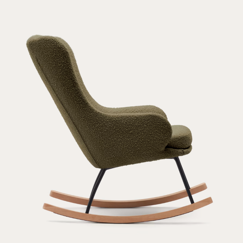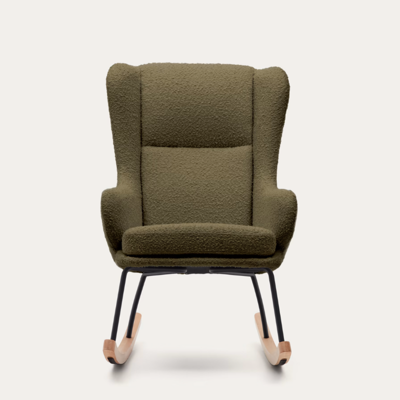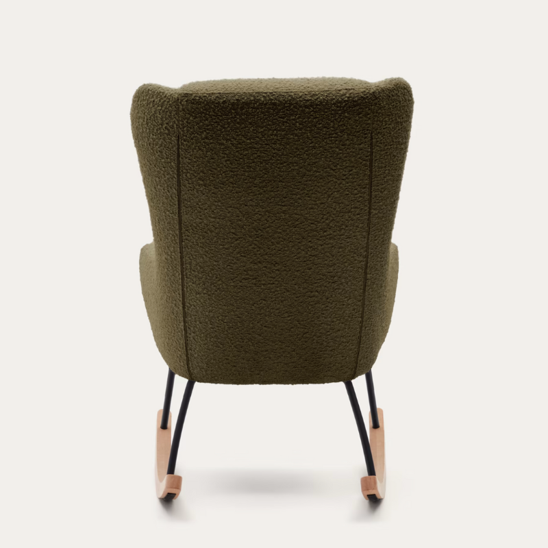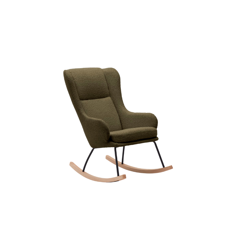 Fauteuil à bascule tapissé avec tissu style bouclette.