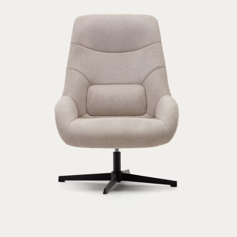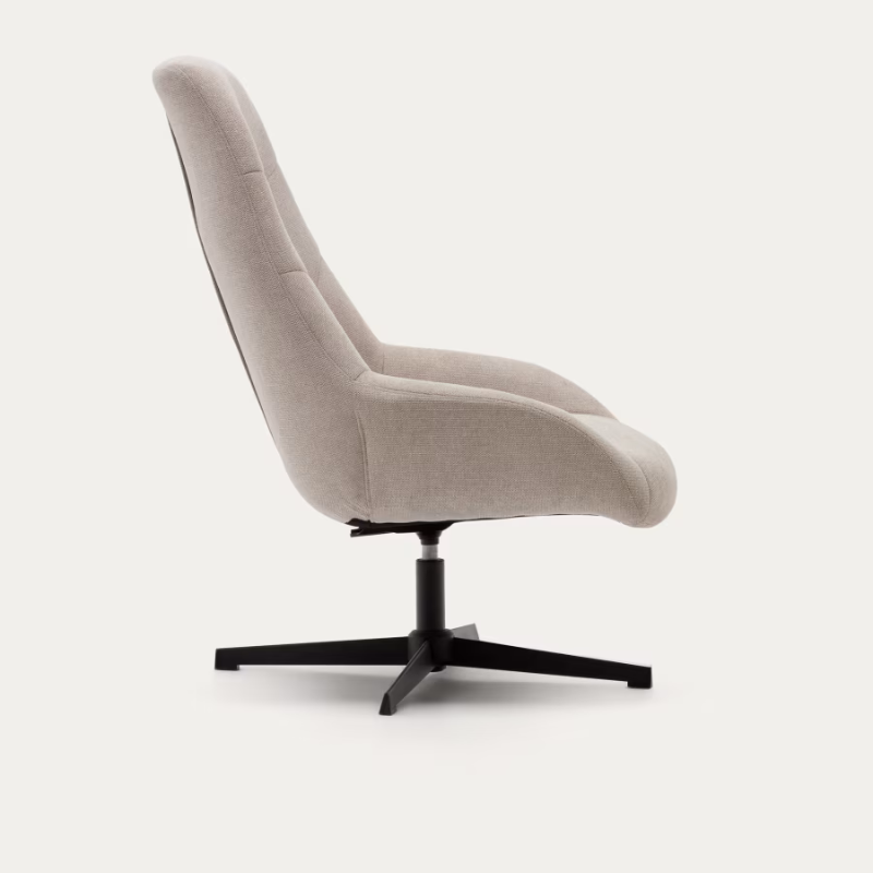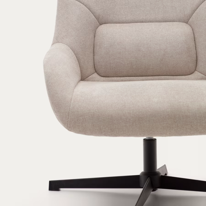 Fauteuil giratoire CELIDA en chenille beige et acier avec finition noire