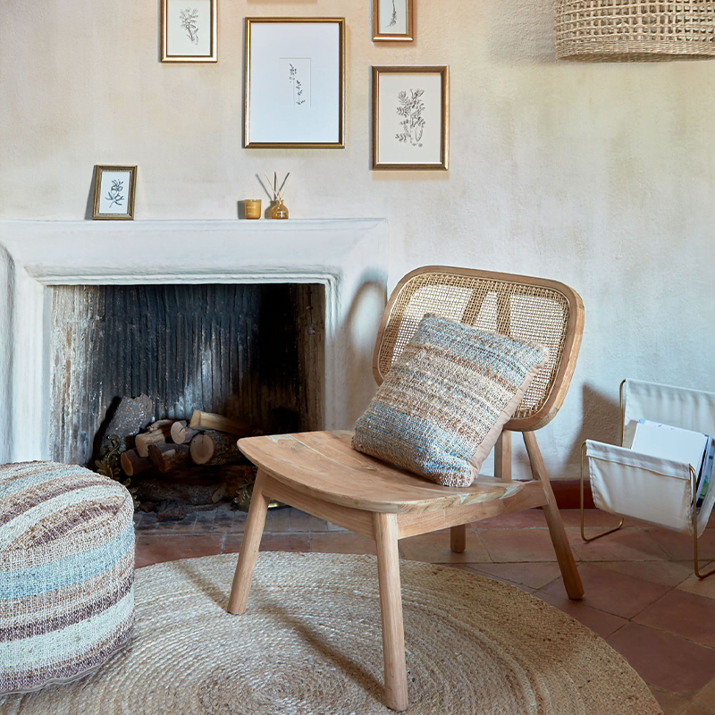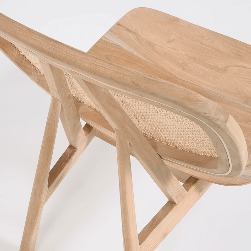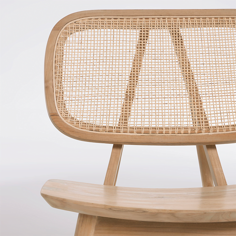 - Le dossier est fait en rotin tressé à la main en suivant des techniques artisanales spécialisées.