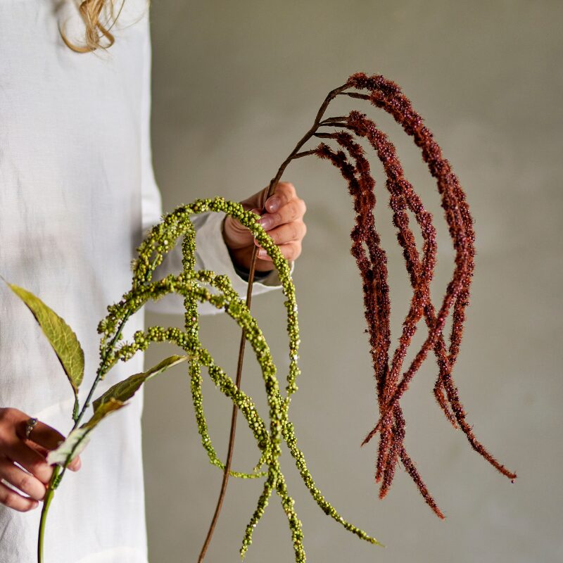 La Tige artificielle Foxtail de Bloomingville apporte de la vie à n’importe quelle pièce avec ses cascades de petites fleurs brun-rouge. Sa forme organique et son apparence douce ajoutent de l’élégance à tout bouquet. Associez la tige à d’autres fleurs artificielles ou laissez-la seule dans un vase pour créer un beau point focal. Vous pouvez modeler la tige pour qu’elle s’adapte parfaitement à votre décoration et au style du vase.