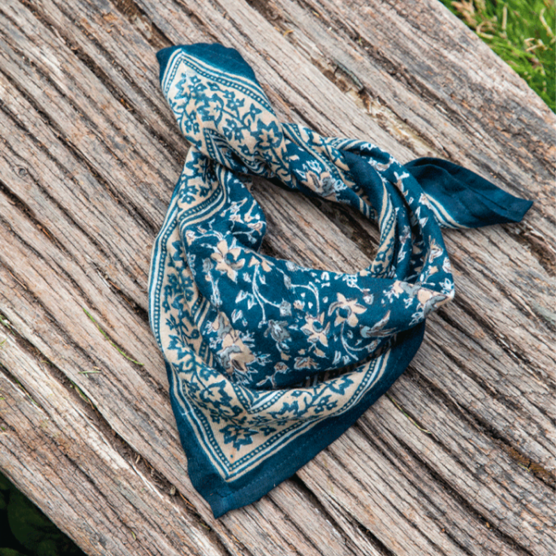 Un carré coloré et imprimé à la main sur un tissu doux et léger, qui enveloppera votre cou pour un petit look boho-chic ! À porter autour du cou, dans les cheveux ou en ceinture.